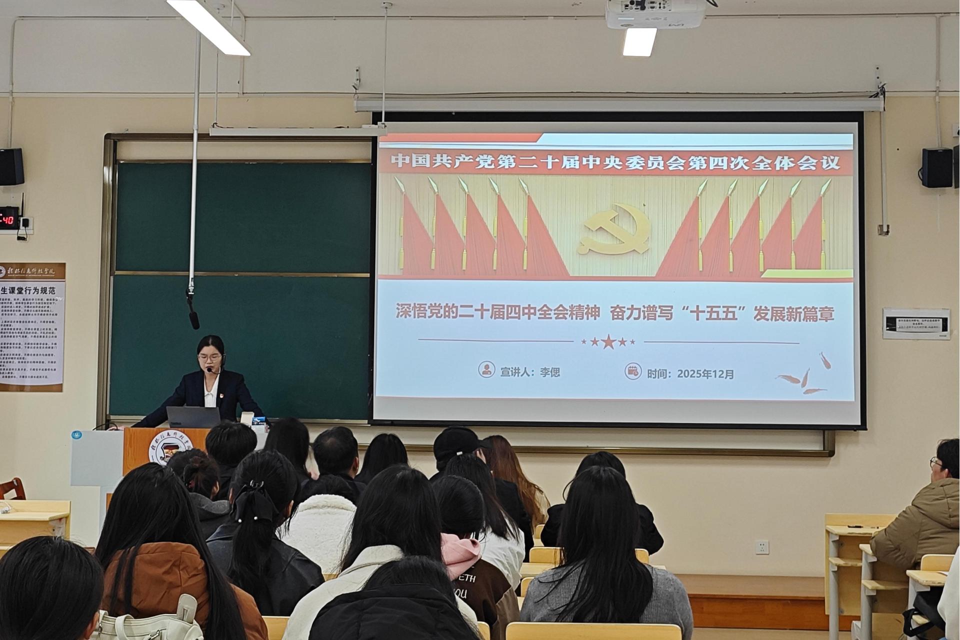 为深入学习贯彻党的二十届四中全会精神,进一步强化青年党员的思想政治引领,推动全会精神在基层党组织落地生根、见行见效。2025年12月3日下午,外贸与外语学院第三学生党支部在敏思楼D306组织开展“凝心聚力接续奋斗,勇赴中国式现代化壮阔征程”主题党课。本次党课特邀马克思主义学院李偲老师担任主讲,外贸与外语学院第三学生党支部全体党员参加。
