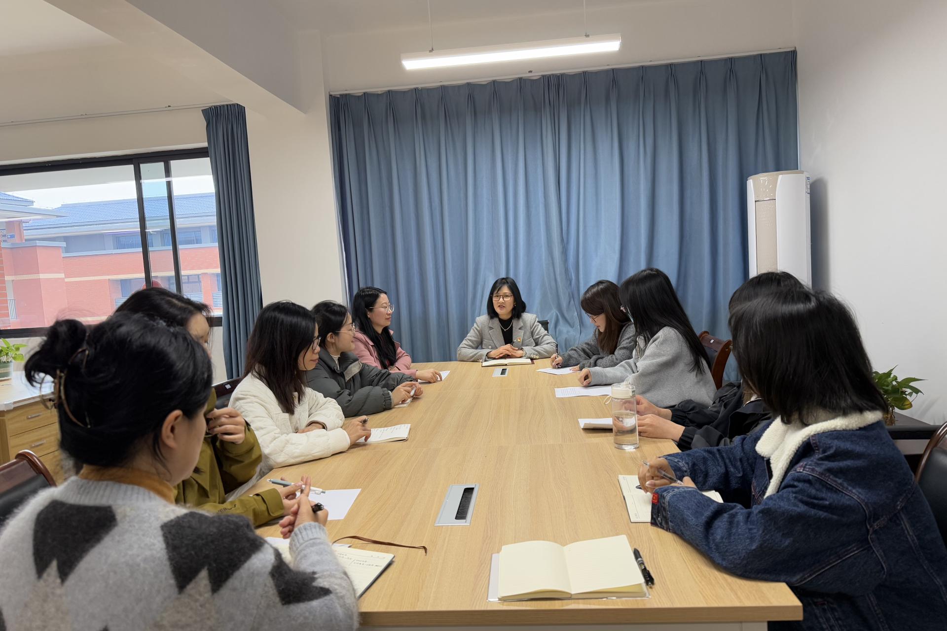 交流会上,武梓芝老师分享了自己在教学过程中积累的丰富经验,围绕英语专业课程设计、课堂互动技巧、课程思政等核心内容展开分享,强调要根据学生学情,将语言技能训练与思政元素有机融合,提升课堂教学的趣味性与实效性,让学生在语言学习中潜移默化提升综合素养。韦子璇老师则着重介绍了在教学竞赛中的获奖经验,从选题方向、教学展示设计、评委提问应对等方面进行细致讲解。她结合自身参赛经历,分享了教学设计创新、教学资源整合、信息化工具运用等实用技巧,为新教师今后参与教学竞赛提供了可操作的参考路径。英语教研室主任王雪利老师结合日常听课评课情况,针对新教师在教学过程中可能遇到的重难点问题进行针对性指导,她着重强调了课堂管理和教学规范的重要性,建议新教师注重教学细节打磨,加强课后反思与总结,不断提升教学基本功。在互动交流环节,新教师们积极提问,就课程重难点突破、学生学习积极性调动、教学科研平衡等问题与嘉宾深入探讨,现场氛围热烈融洽。