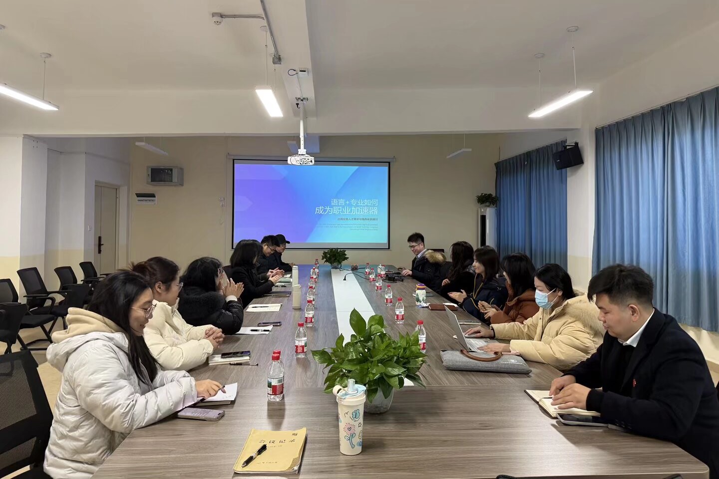 12月25日,骆驼集团股份有限公司与外贸与外语学院校招交流分享会在M714会议室举行。外贸与外语学院院长王家年、副院长赖安、陆晓、黄曼冰、党委副书记杨锦超及各专业教研室主任与骆驼集团股份有限公司人力资源部副总梅恒参会,围绕企业海外人才需求展开交流分享,对接人才培养与市场需求信息。