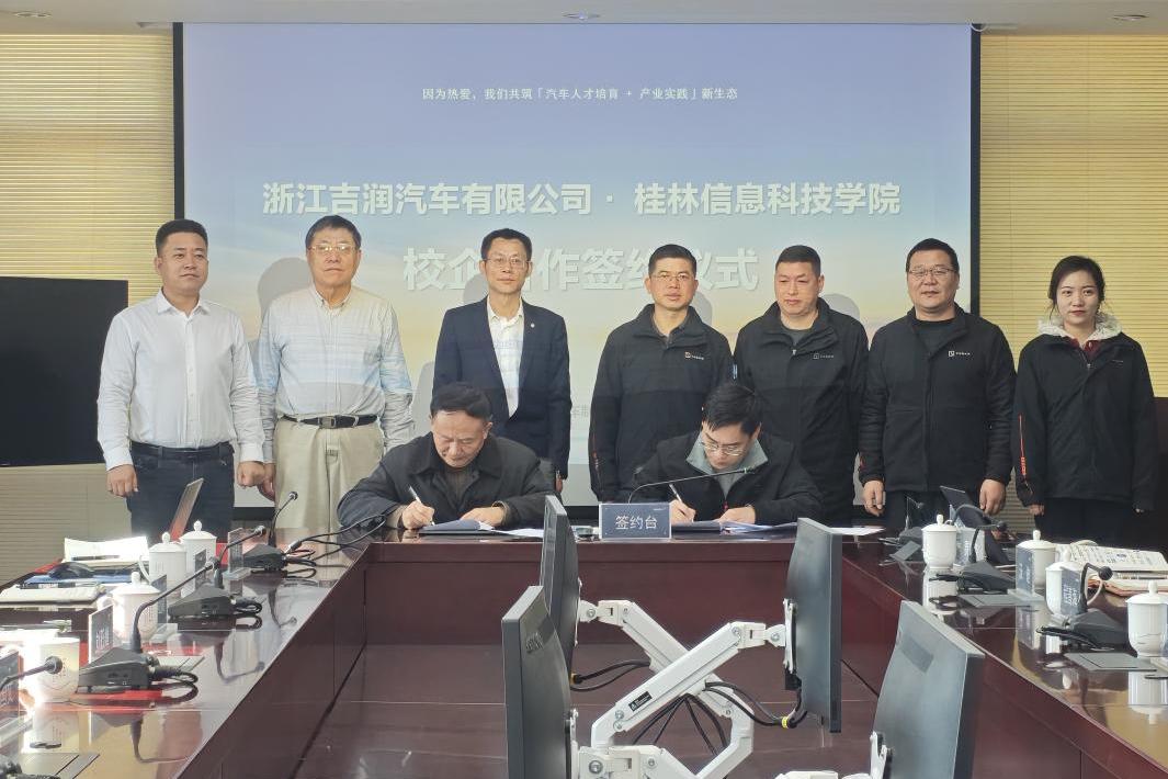 为深化产教融合、推进校企协同育人,精准培养适配现代汽车产业发展的高素质应用型人才,1月15日,我校与吉利汽车集团浙江吉润汽车有限公司校企合作签约仪式在宁波北仑浙江吉润汽车有限公司隆重举行。学校副校长刘跃峰、校企合作处处长李晓健、机电工程学院院长胡国文等校方代表,与浙江吉润汽车有限公司春晓工厂总监陈少良、人才经营部部长沃迪等企业相关负责人共同出席仪式,携手开启校企合作新篇章。