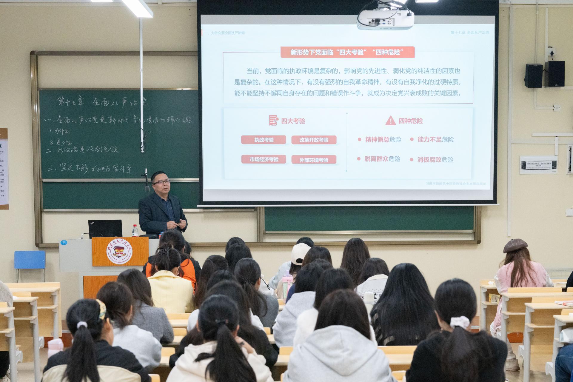 学校党委书记甘勇教授为学生讲授思政课11月7日,学校党委书记甘勇教授走进思政课堂,为24级财务管理专业的学生讲授《习近平新时代中国特色社会主义思想概论》课。授课现场授课过程中,甘书记以“全面从严治党”章节为核心内容,从历史逻辑、现实需求...