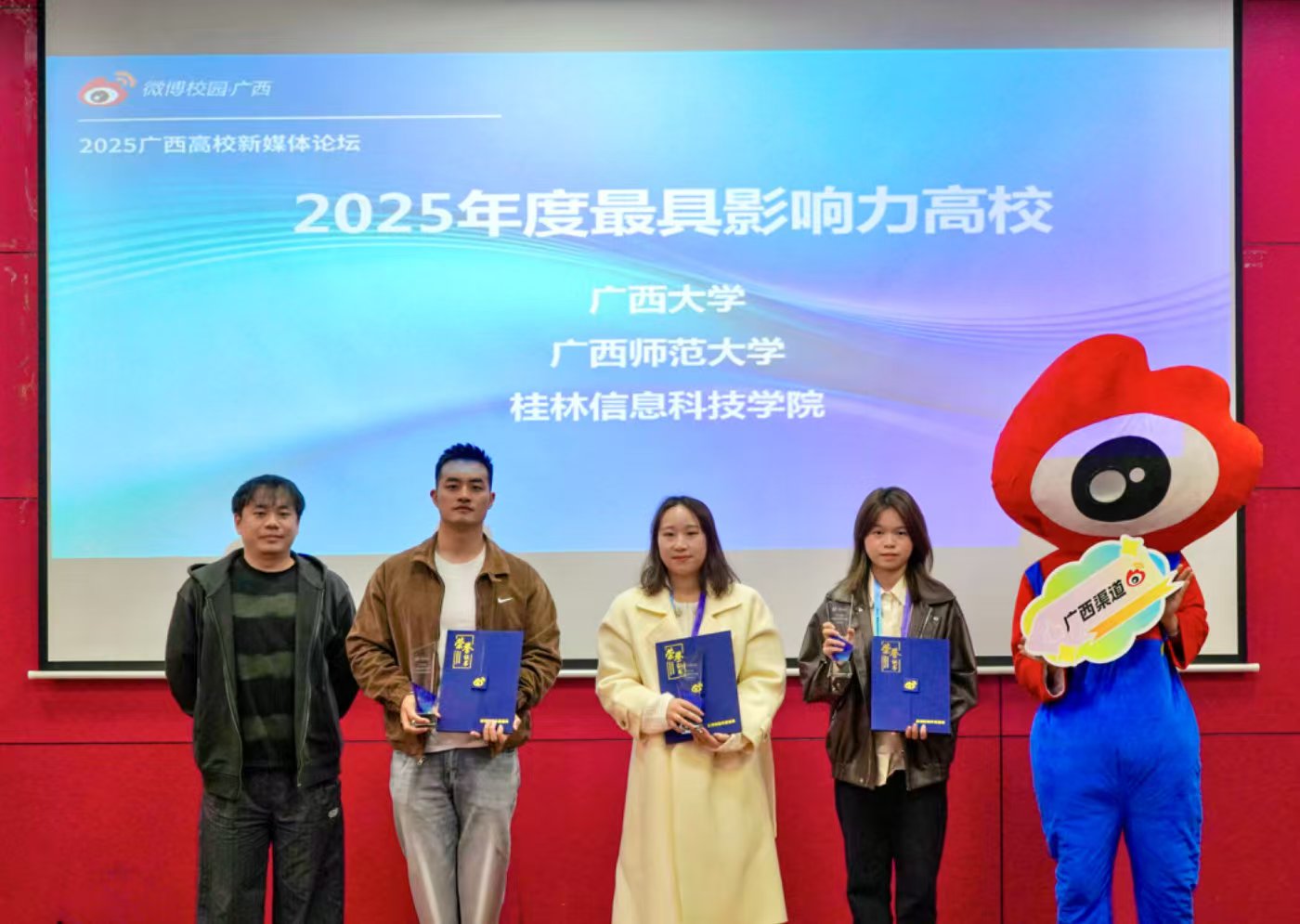 【喜讯】我校获评微博校园2025年度广西最具影响力高校11月23日,2025广西高校新媒体论坛在广西师范大学举办。广西大学、桂林电子科技大学、广西医科大学、广西财经学院、桂林旅游学院、桂林信息科技学院、南宁职业技术大学等广西高校的师生代表齐聚广西师范大学参与...