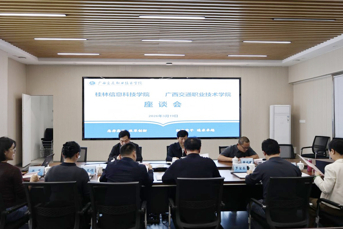 3月19日下午,我校校长解庆林率队前往广西交通职业技术学院开展调研交流。广西交通职业技术学院李文勇校长及相关职能部门、二级学院负责人出席了本次座谈会,我校相关职能部门及二级学院负责人陪同参加交流。