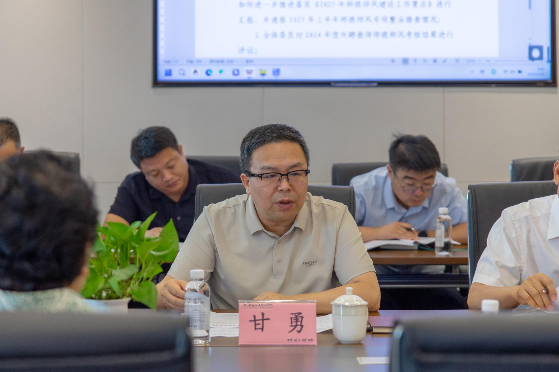 甘勇作总结讲话时强调,新时代高校师德师风建设责任重大、任务艰巨,2025年是“十四五”收官、“十五五”谋划的关键之年,各二级单位要以更高站位、更严标准抓实抓细师德师风建设,要将制度学习、日常督导、责任落实三者贯通起来,真正形成“党风促师风、师风带教风、教风正学风”的良性发展格局。