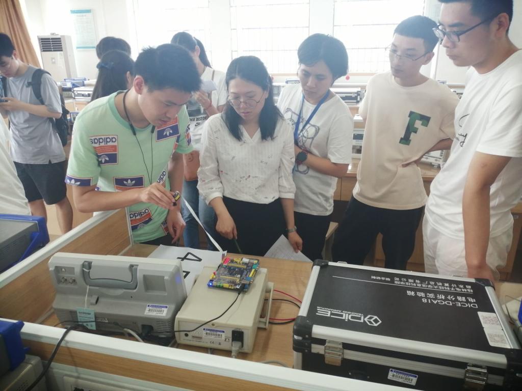 6月9日,电子工程系第六届“四禾杯”暨“科技之光-星光”电子设计竞赛,分别在42304、42305、42306教室开展参赛作品验收工作,系副主任韩桂明、各教研室主任担任评委。