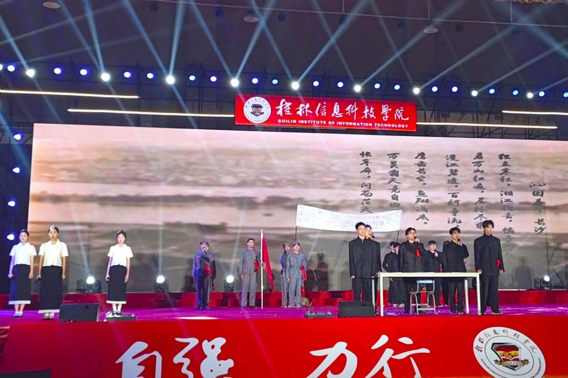 为深入贯彻落实关于传承和弘扬中华优秀传统文化的指示精神,大力弘扬红色文化,2025年5月29日晚,桂林信息科技学院在行健楼体育馆举办第二届毛泽东诗词朗诵表演比赛暨校园舞蹈大赛。电子工程学院代表队积极参加,展现了良好的精神风貌。