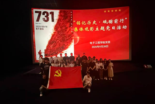 为坚定党员理想信念,筑牢信仰之基。9月28日,电子工程学院党委组织全体党员集体观看红色电影《731》,以光影为媒介重温历史,深化爱国主义教育。
