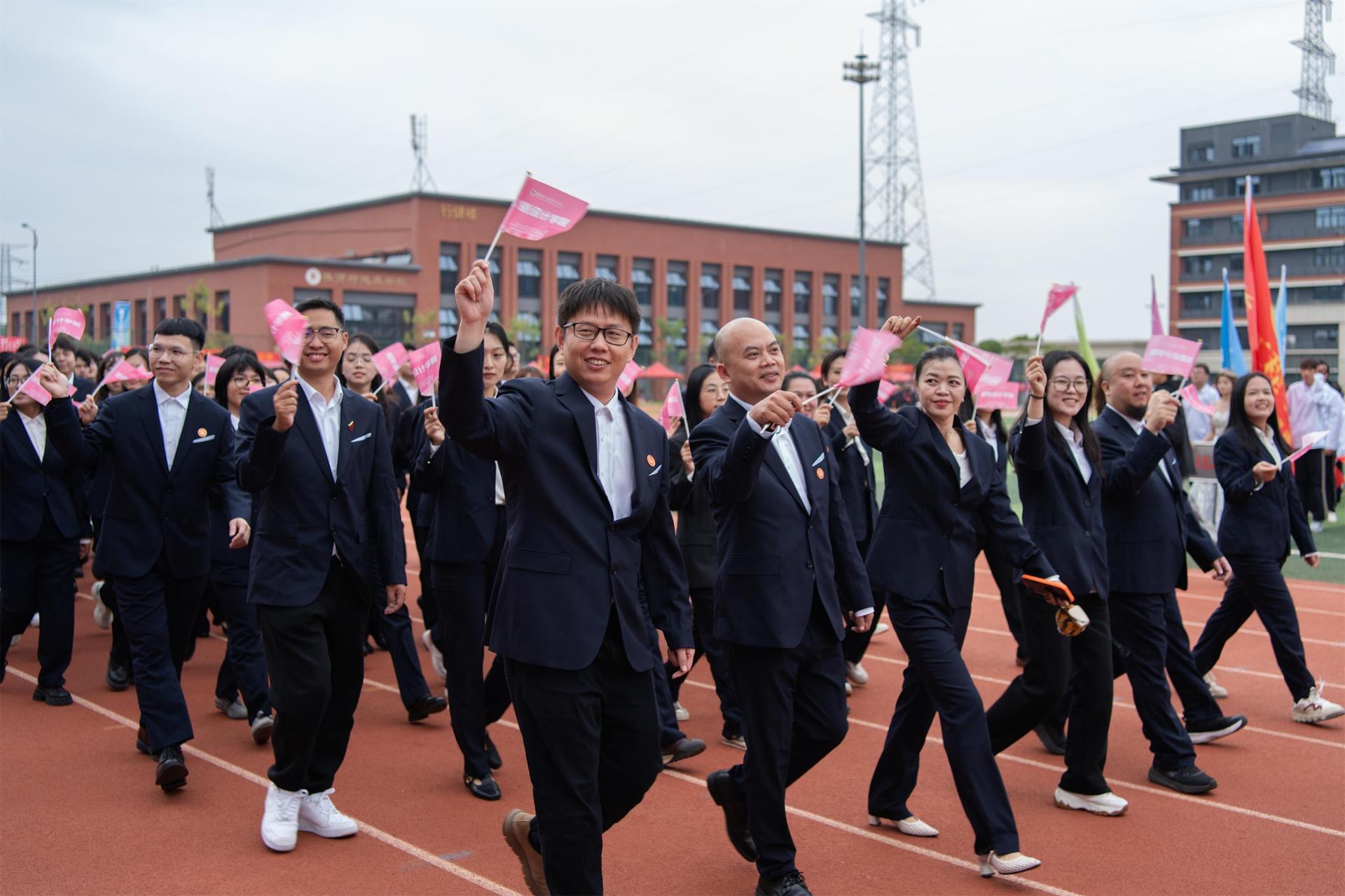 在庄严的升国旗仪式后,校长解庆林致开幕词。他强调,体育是“五育并举”的重要组成部分,学校高度重视体育教育,始终秉持“以终为始、以生为本”的办学理念,不断完善体育设施、优化教学条件,全力推动体育事业发展,助力学生德智体美劳全面发展。解庆林表示,运动会是全校年度体育盛事,既是速度与力量的较量,也是体育精神的展现。他希望运动员们发扬奥林匹克精神,赛出风格与水平;裁判员们秉持公平公正公开原则,保障赛事顺利进行;全校师生能借此契机积极参与体育锻炼,让“爱信科、爱运动”的理念深入人心。
