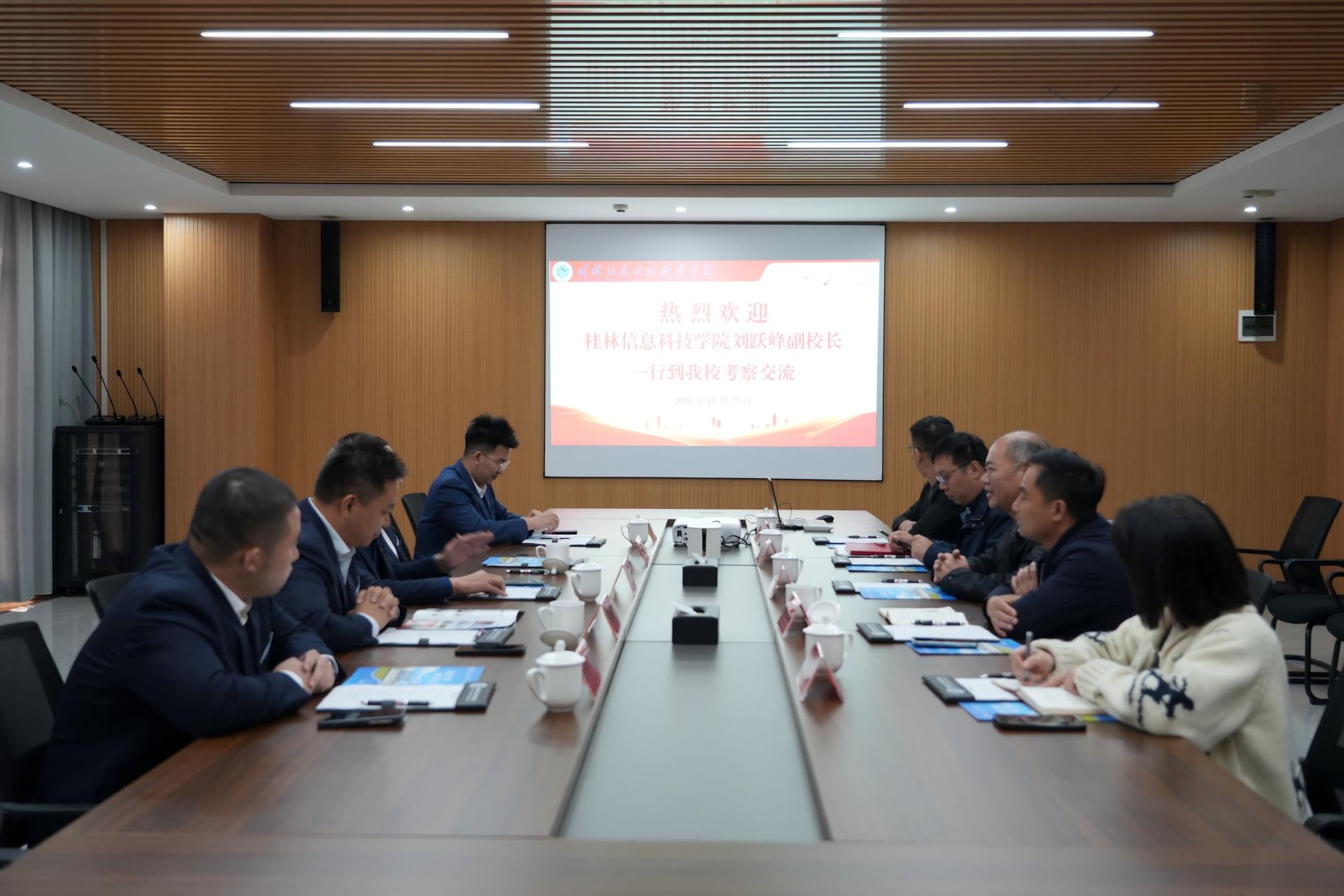 为精准掌握高职高专学生专升本升学意向与专业分布特征,系统借鉴校企合作与就业服务领域经验,进一步完善我校专升本招生培养衔接机制与就业指导服务体系,11月27日,我校副校长刘跃峰率领招生办公室、就业指导服务中心负责人一行,赴桂林信息工程职业学院开展专题考察。桂林信息工程职业学院党委书记黄强、副校长伍顶及相关职能部门负责人热情接待。