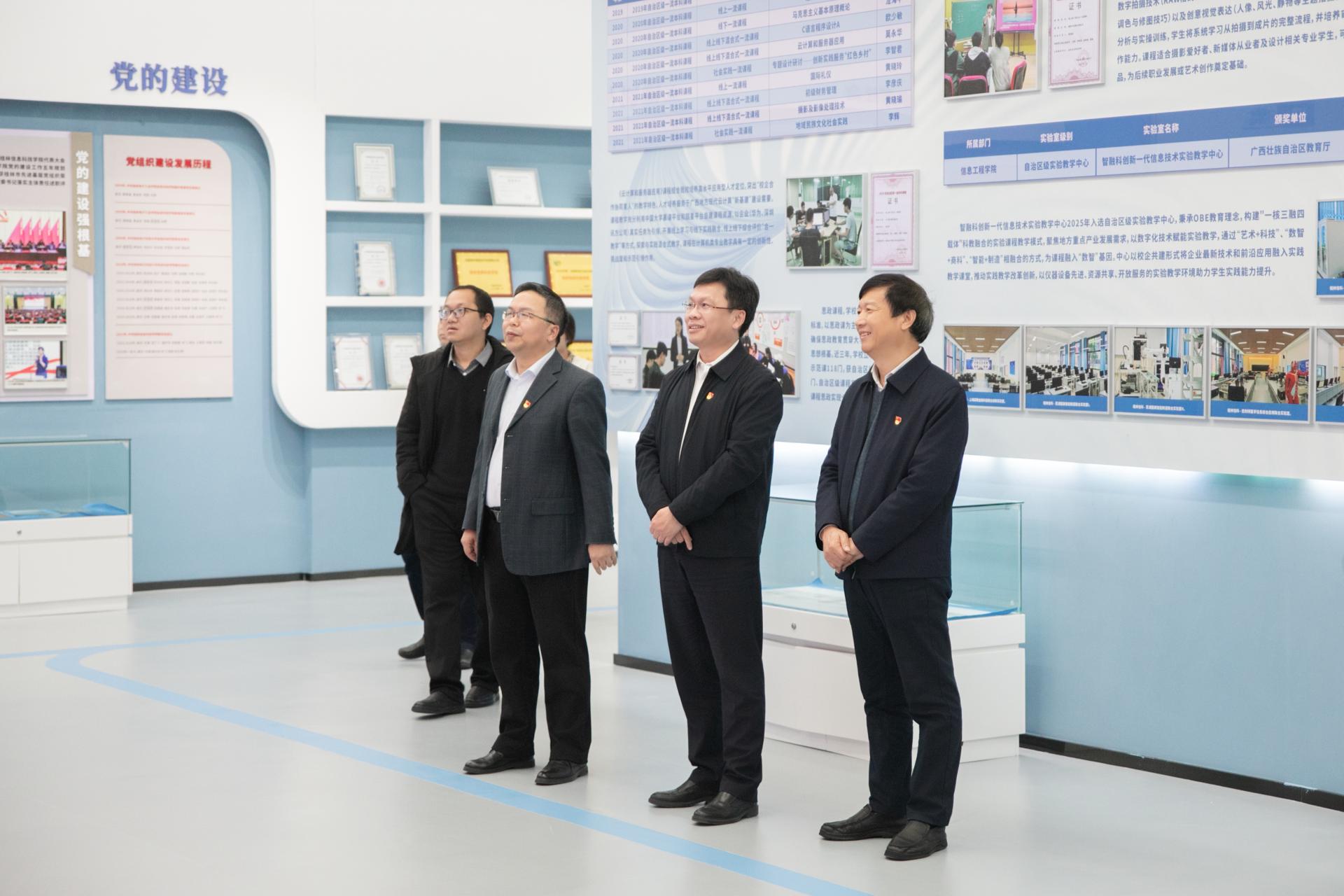 会后,唐德华书记一行实地参观了我校图书馆、校史馆、教师发展中心、产教融合中心、科技馆、思政馆和我校获批广西高校党建工作样板支部阵地建设等育人场所。