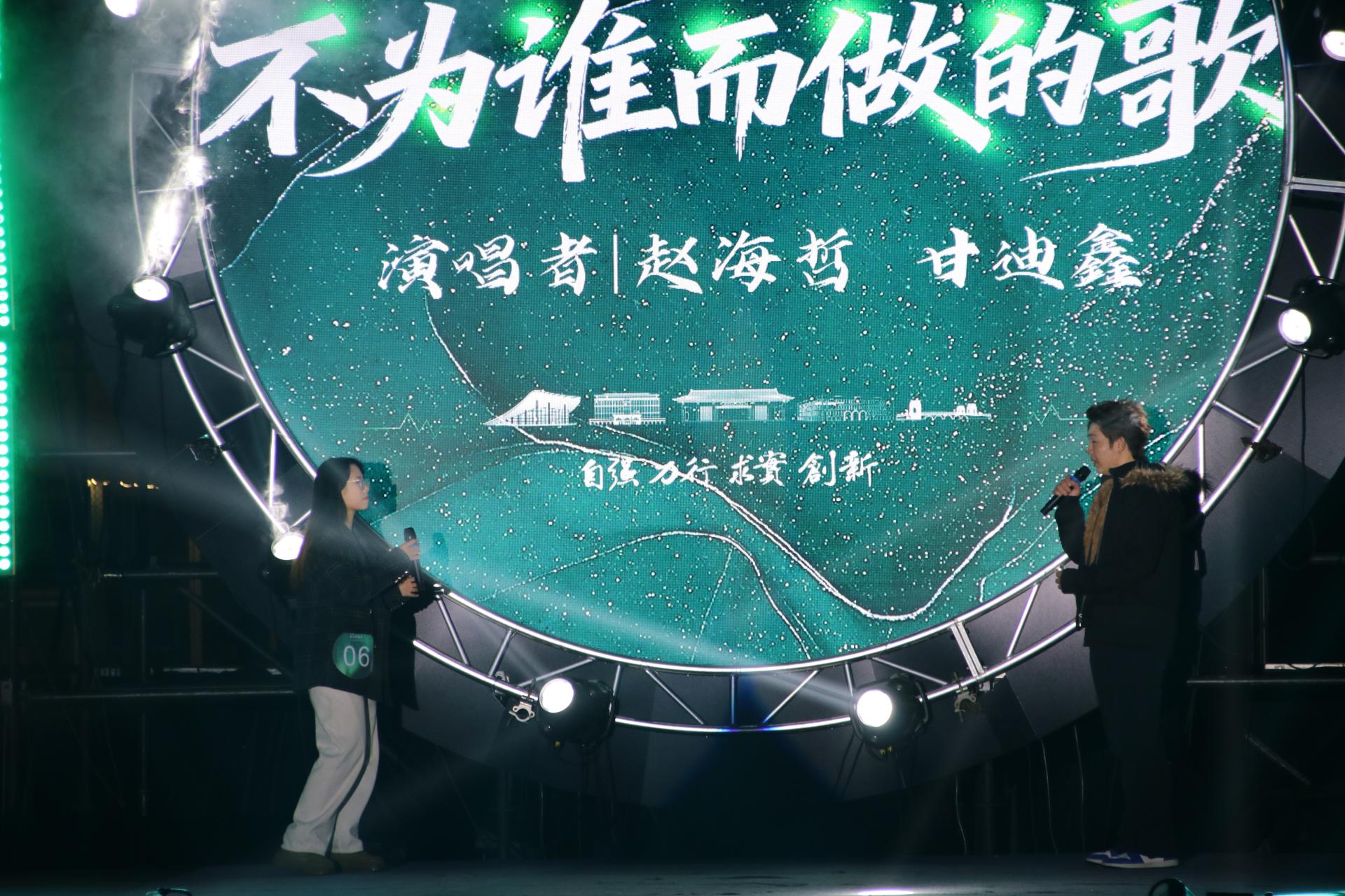 期间,学校大学生艺术团走秀《焦土重生》惊艳亮相,模特们自信的步伐与独特造型尽显时尚风采;幸运抽奖环节将气氛推向高潮,观众欢呼声此起彼伏;首届冠军吴江浩惊喜返场,一曲《输了你,赢了世界又如何》以深情演唱打动全场,让观众沉浸其中。