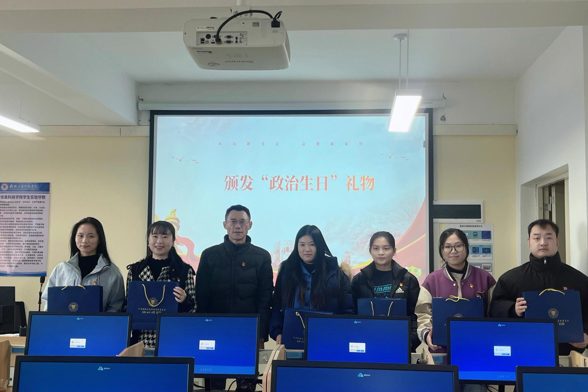 会上,支部举行了庄重而温馨的“政治生日”仪式。本季度,6名党员迎来了他们的“政治生日”。刘跃峰副校长为过“政治生日”的师生党员逐一颁发礼物,并致以亲切问候和殷切勉励。党员代表廖星男、李青同志现场分享了入党初心与成长感悟,表达了对组织培养的感激之情和继续奋斗的决心。刘跃峰副校长在听取代表发言后指出,为党员过“政治生日”是强化党员身份认同、激励担当作为的重要仪式,希望全体党员时刻牢记第一身份是共产党员,永葆政治本色,在学习和工作中走在前、作表率。