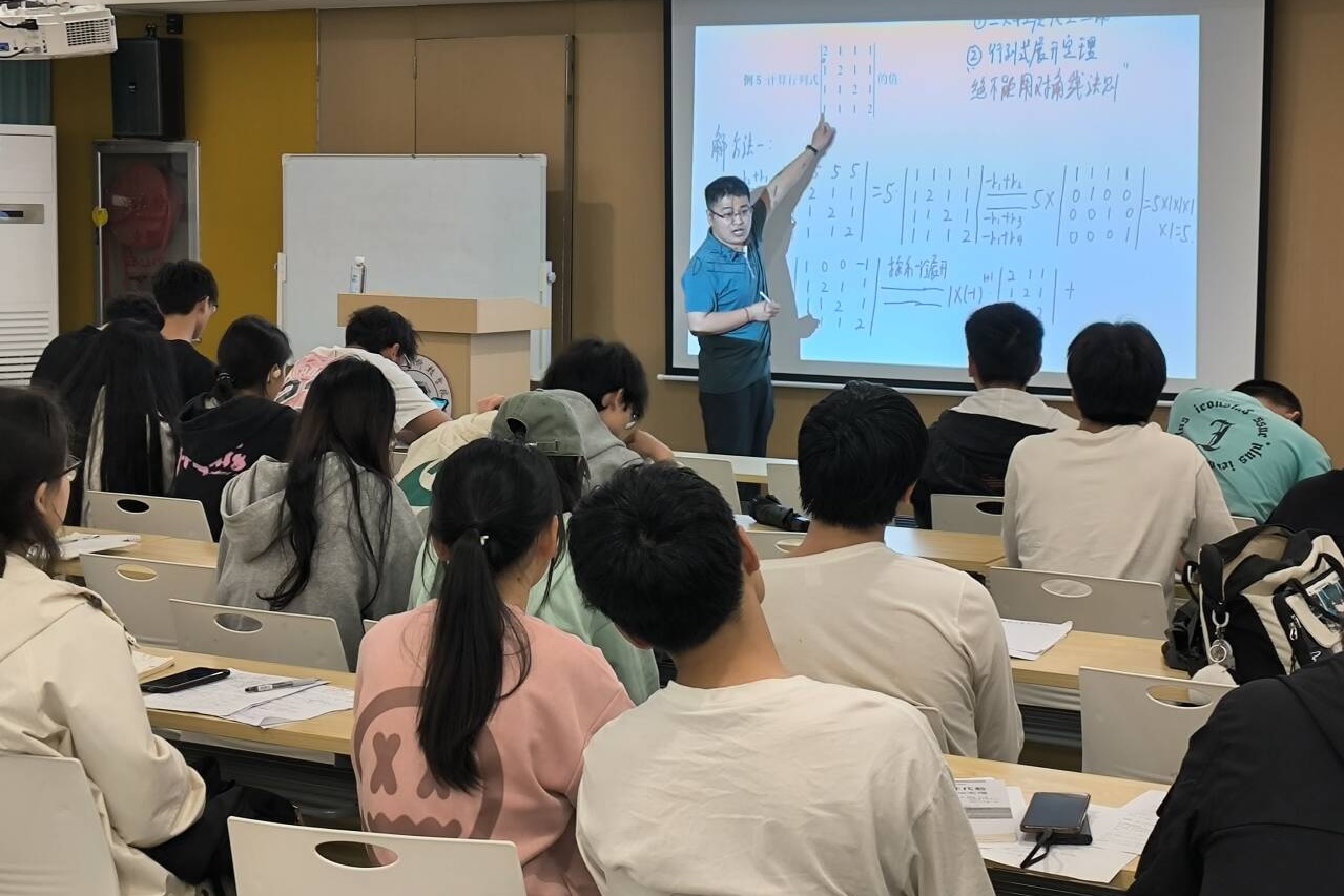 在为期四天的系统辅导中,基础教研部的老师通过“知识图谱构建+典型例题精讲+解题策略传授”三维一体的教学模式,重点突破矩阵运算、特征值与特征向量、二次型标准化等核心章节的重难点。活动现场学习氛围浓厚,学生携带教材、习题集及个人整理的错题本积极参与。在互动答疑环节,师生就“线性方程组解的结构分析” 、“矩阵对角化条件判定”等专题展开深度研讨。