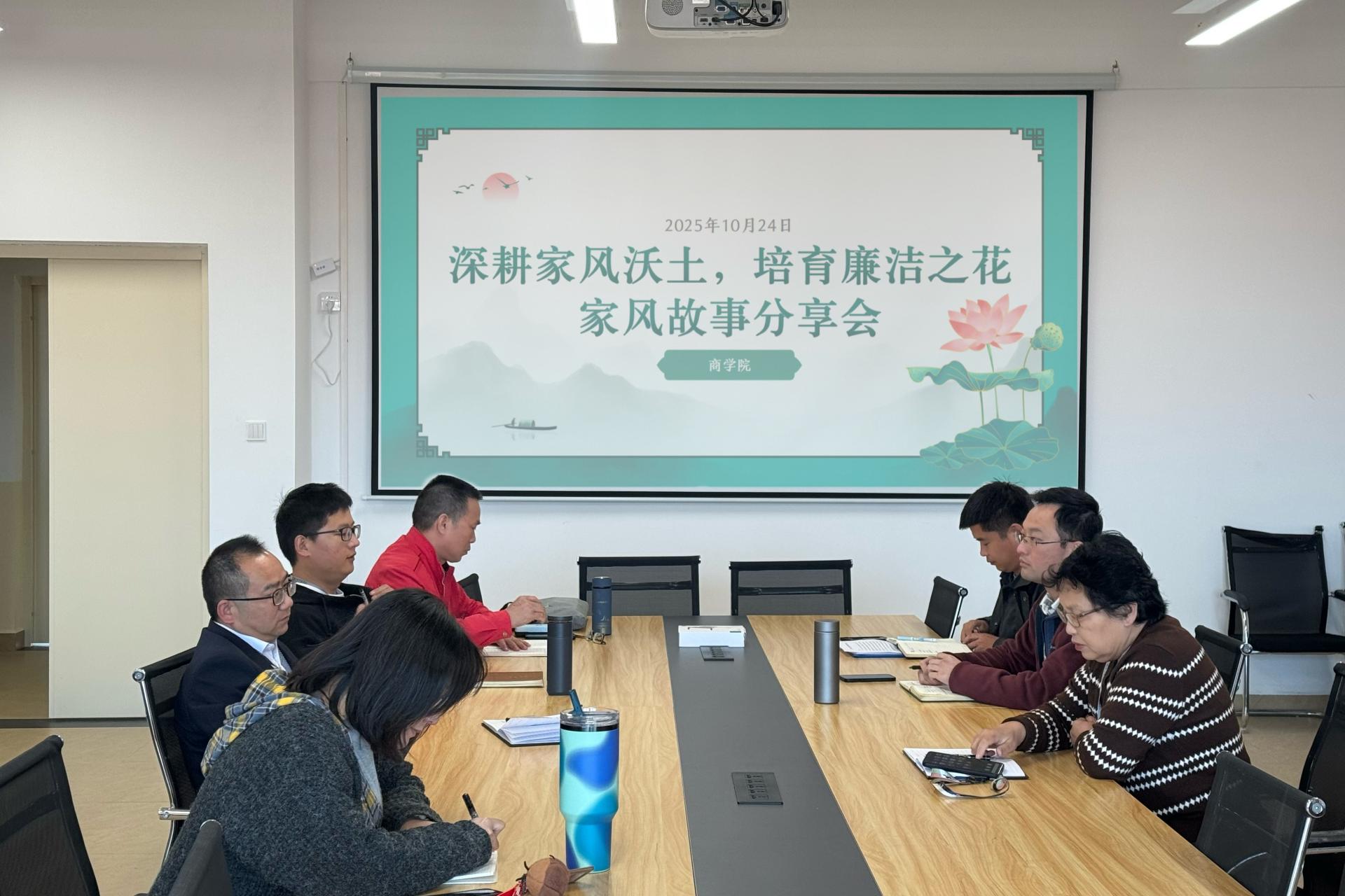 为推进落实清廉学校建设提质增效的工作措施,培育清廉文明向上向善家风,10月24日,商学院在H612会议室开展“深耕家风沃土培育廉洁之花”家风故事分享会。学院领导班子全员参与,通过分享家风故事、感悟廉洁内涵。