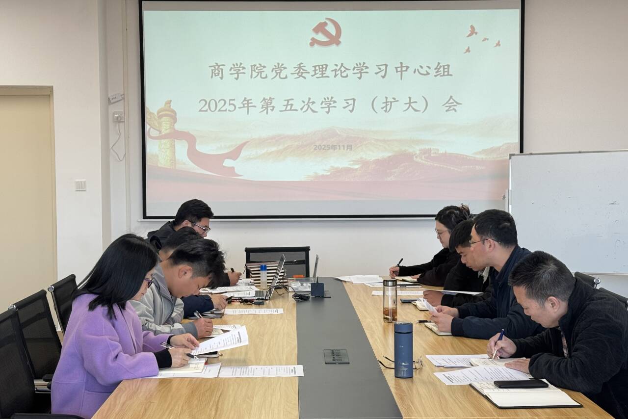 11月26日,商学院党委理论学习中心组在汇通楼H612召开2025年第五次学习会议,专题学习党的二十届四中全会精神。党委书记许奇主持会议,理论学习中心组成员、各支部书记、组织员参加会议。