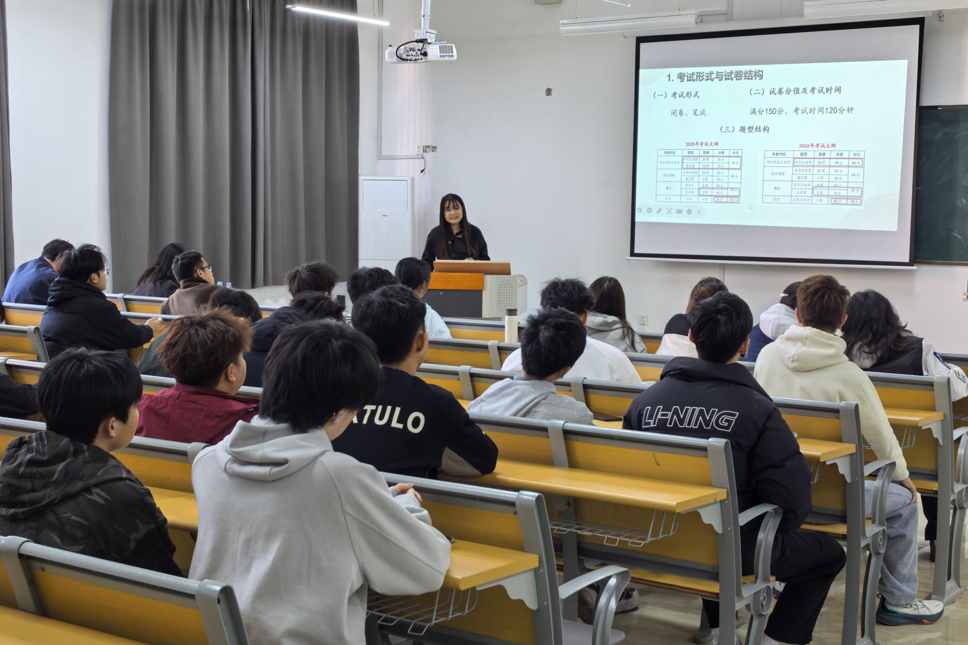 为切实助力桂林信息工程职业学院2023级有专升本意向的学子明晰考试形势、筑牢知识根基、科学规划备考路径。12月17日下午,我校主动发挥教学资源优势,委派工科数学教研室主任廖秀、英语(对外汉语)教研室专任教师覃耀葵专程赴桂林信息工程职业学院开展专升本考试高数与英语辅导专题讲座。此次讲座共40余名学生报名参加,现场学习交流氛围热烈浓厚。