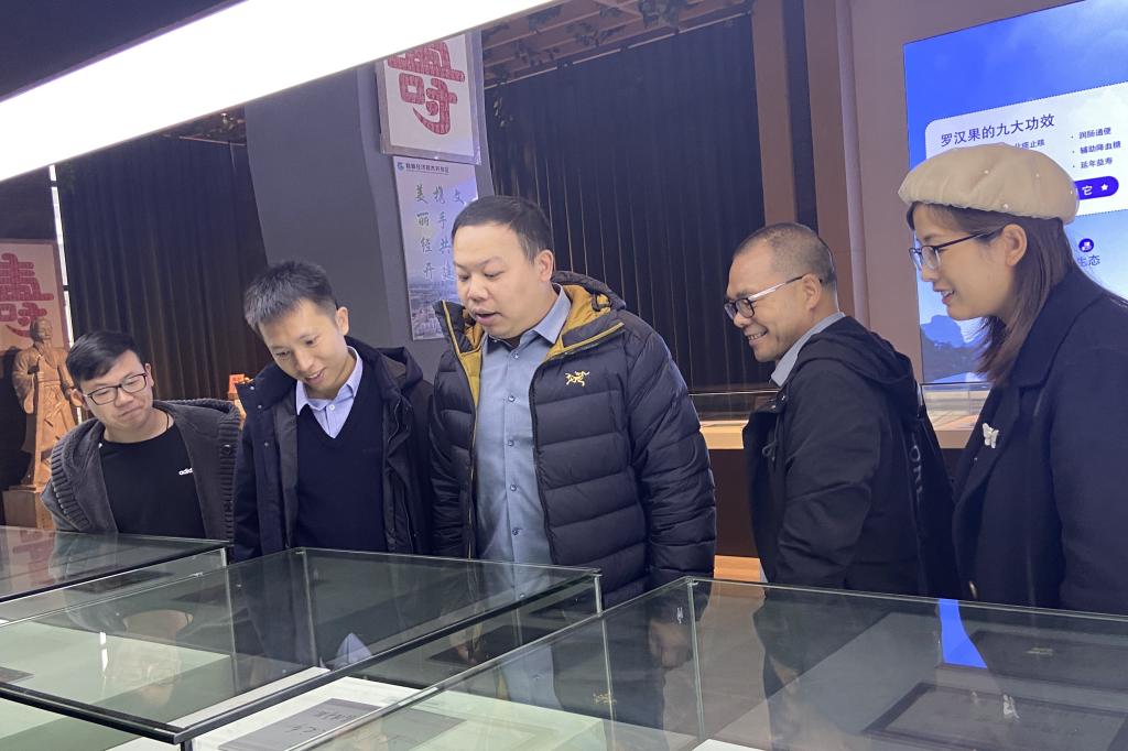 在负责人的带领下,学院一行人参观了罗汉果标准化生产示范基地及中国罗汉果文化展厅,并与企业负责人进行了深入交流。座谈会上,文超书记介绍了学院基本情况和人才培养理念,与企业负责人围绕“实习实践、劳动教育、就业帮扶、企业游学、横向课题”等内容展开深入探讨。李林辉董事长对我院的人才培养理念和校企联合培训给予了充分肯定,表示希望与我院建立长期合作关系,互相支持、双向介入、优势互补、资源互用,共同培养全面发展的应用型人才。