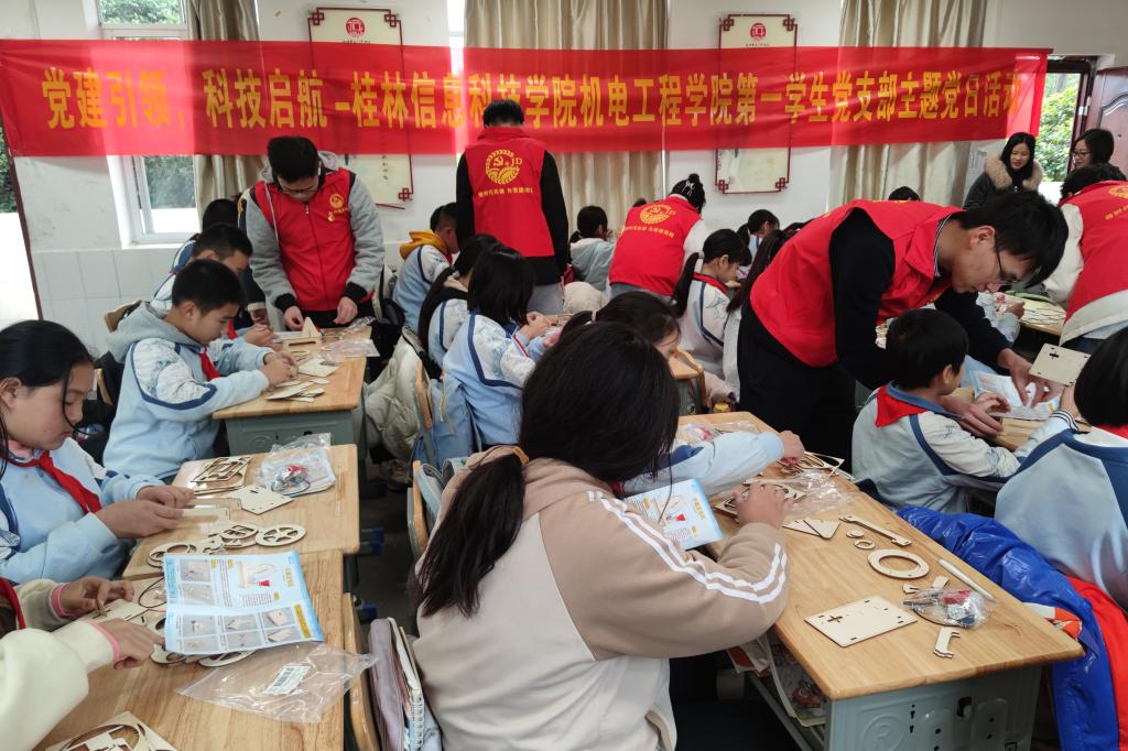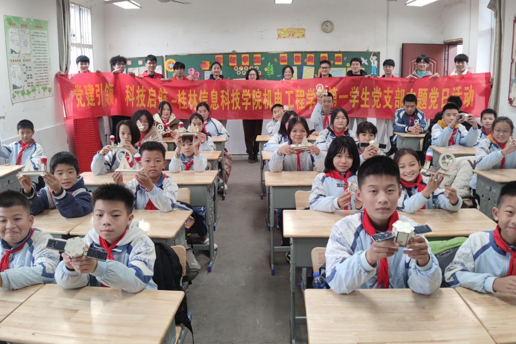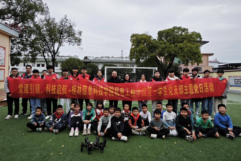 为深入学习贯彻习近平新时代中国特色社会主义思想,充分发挥学校服务桂林基础教育科技示范作用。12月12日,机电工程学院第一学生党支部赴桂林市龙门中心校开展“党建引领,科技启航”党日活动。活动由支部书记严继玲老师主持。