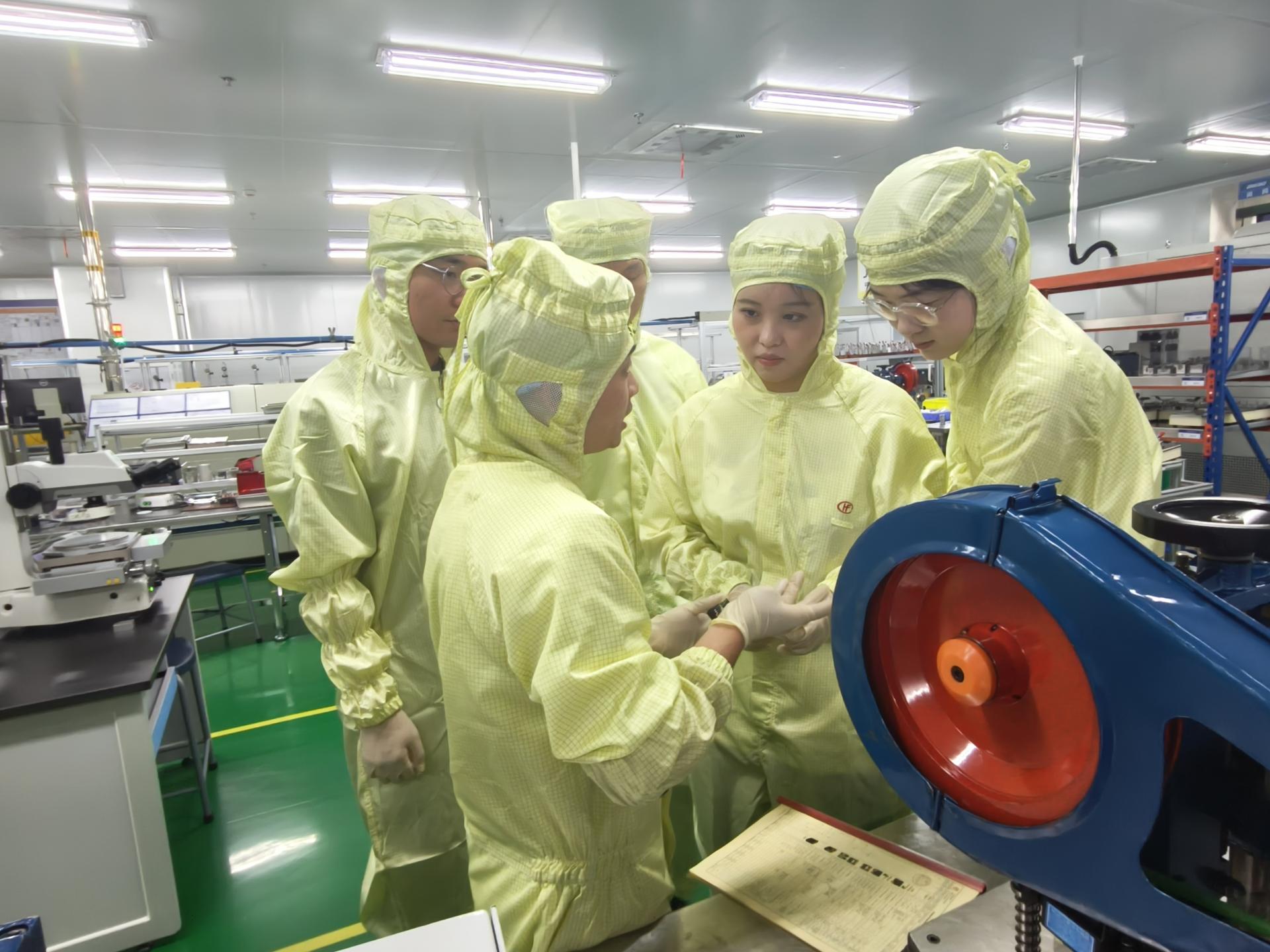 该公司是我国最大的继电器生产和销售企业,是专业从事继电器研制、开发、生产与销售的高新技术企业。本次暑期实践重点以“3+1校企合作育人平台”为结合点开展多维度实践活动。在为期一个月的实践中,教师们深入企业生产一线,组织观摩生产流水线、项目研发、了解不同产品的制作流程和工艺标准,积极与企业专家互动交流,切实了解高新技术企业对岗位能力、人才培养等方面的需求以及相关前沿技术。同时与入企实习的学生积极开展交流,了解学生实习期间生活、心理状况,适当做出积极引导。