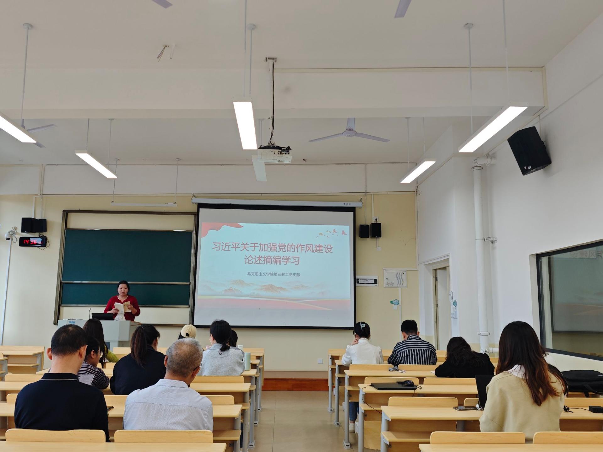 4月25日下午,马克思主义学院第三教工党支部在C514教室组织开展了《习近平关于加强党的作风建设论述摘编》专题学习会。会议由党支部书记李琳玲老师主持,支部全体党员教师参加。