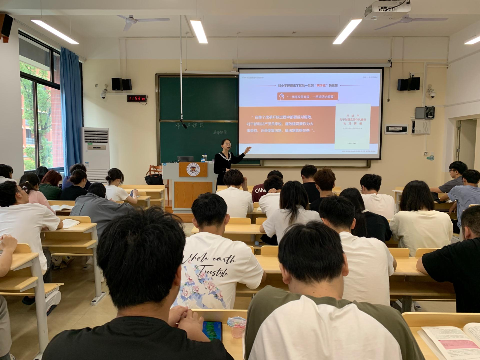 课上,党支部书记何亚慧老师依托《毛泽东思想和中国特色社会主义理论体系概论》课程,深入解读了邓小平理论中“两手抓两手都要硬”的重要思想,着重分析了“一手抓改革开放,一手抓惩治腐败”内容。这一理论深刻阐述了在经济发展的同时,必须坚定不移地打击腐败现象,为改革开放营造风清气正的环境,让师生们认识到廉政建设对于国家发展的重要性与必要性。剌啸媛老师则结合习近平总书记关于作风建设的重要论述,强调了党性、党风、党纪的有机统一。通过对中央八项规定及其实施细则精神的解读,以及对“四风”问题的剖析,让师生们清晰认识到作风建设永远在路上,必须时刻保持警惕,杜绝不良作风的滋生。