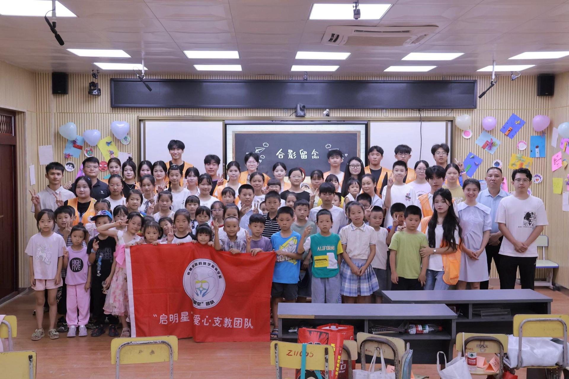 7月17日,商学院“启明星”社会实践团队在灵川县灵田镇中心校举行结营仪式,完成了为期10天的“三下乡”社会实践活动。灵田镇中心校校长朱初喜、灵田镇团委兼职副书记潘洁,学院团委书记袁喆出席仪式,与支教团队成员及百余名学生、家长代表共同见证活动成果。