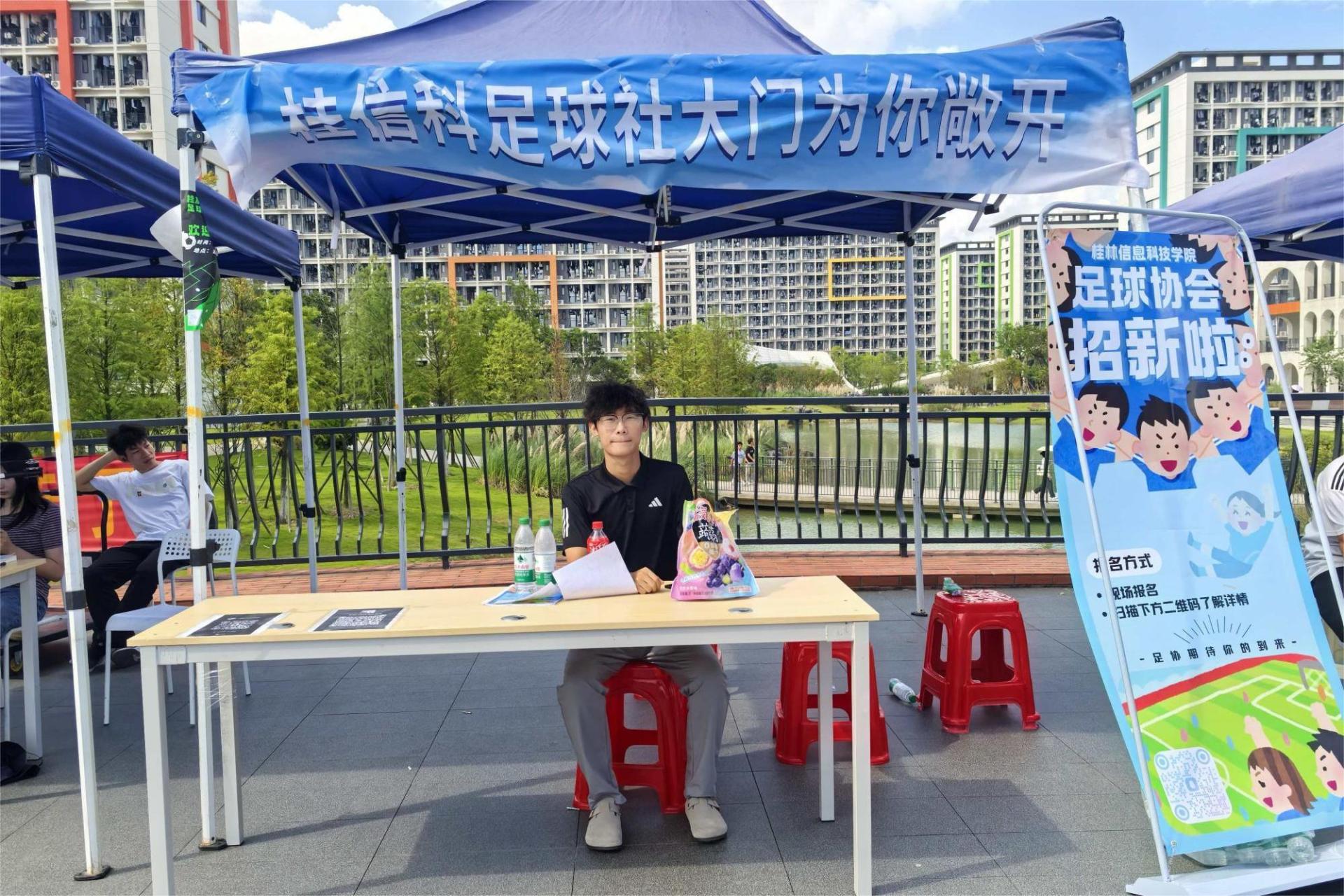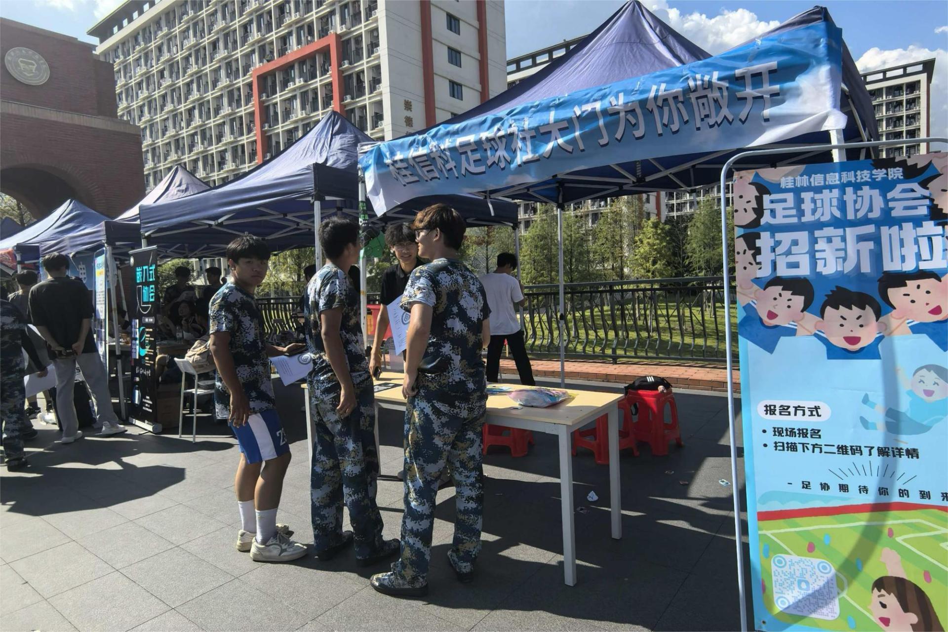 9月12日,桂林信息科技学院足球协会在校园博雅桥开展年度招新活动,以“以球会友,共赴热爱”为主题,吸引了数百名新生驻足咨询,现场气氛热烈。