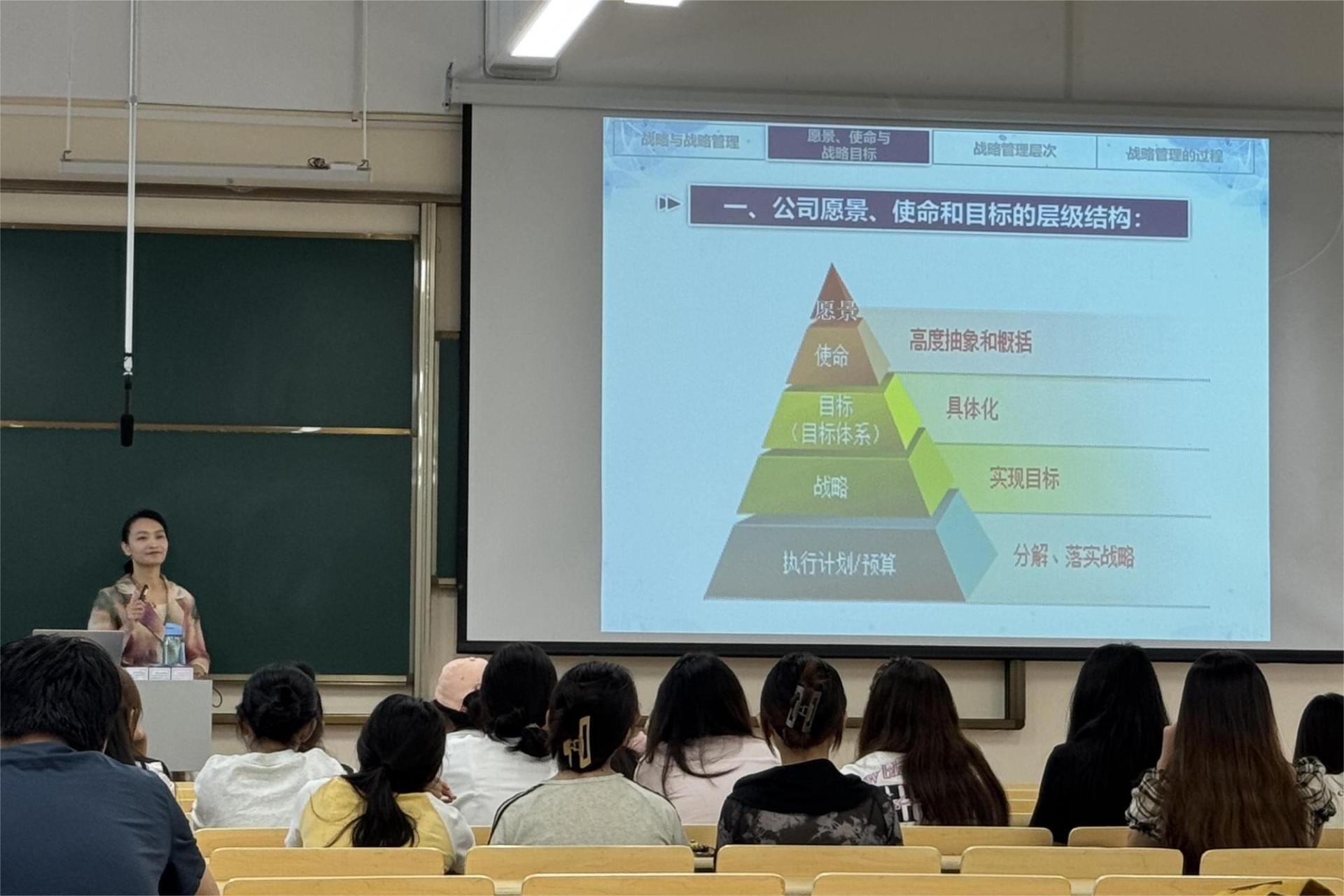 在公开课筹备阶段,许慧馨老师依托多年教学经验,结合《公司战略管理》课程特点及学生认知规律,精心设计教学方案。课堂伊始,她以贴近行业实际的热点话题为切入点,通过多媒体素材创设生动教学情境,迅速拉近理论与实践的距离,激发学生参与热情。整个教学过程中,许老师打破传统“教师主讲、学生被动接受” 的模式,充分调动学生的主观能动性。