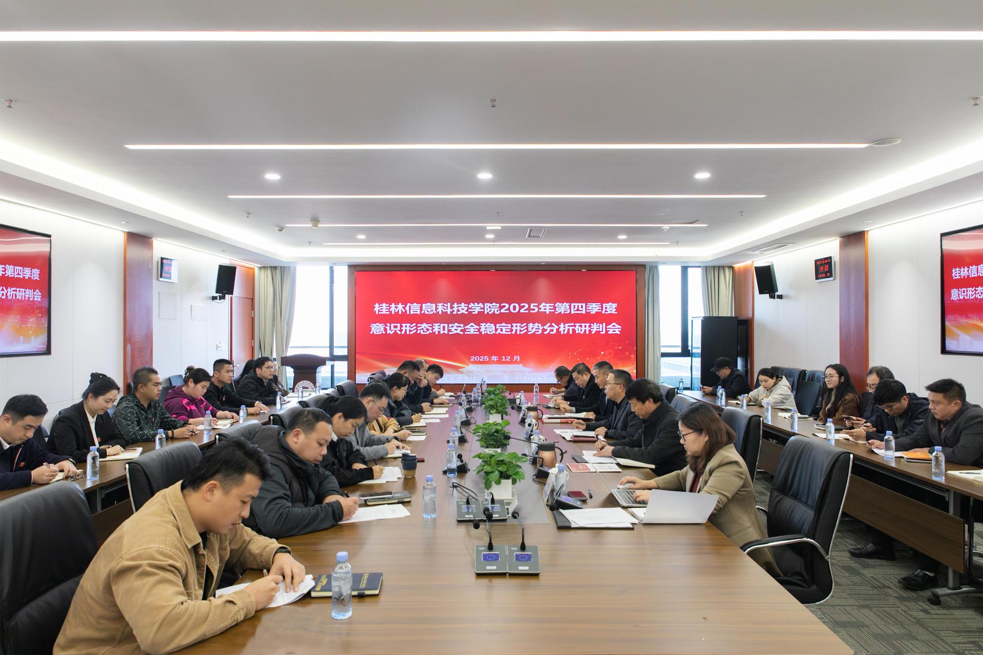 学校召开2025年第四季度意识形态和安全稳定形势分析研判会12月18日下午,学校在知行楼召开2025年第四季度意识形态和安全稳定工作形势分析研判会。学校意识形态和安全稳定工作领导小组成员参加会议,会议由学校党委书记甘勇主持。会议现场会议传达了上级有关文件精神,各...
