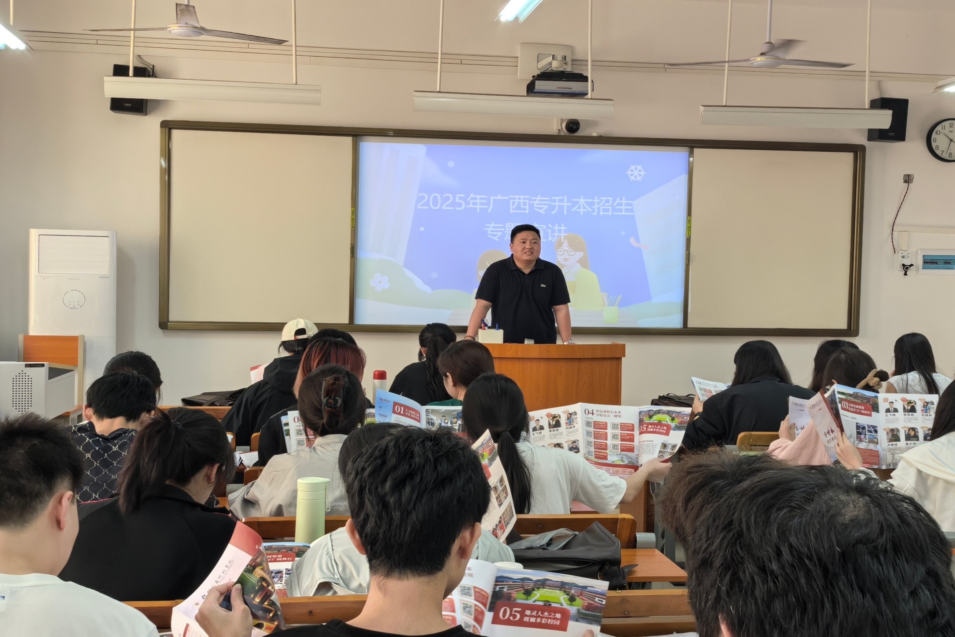 为深化校际合作,提升人才培养质量,吸引更多优秀学子报考我校,近日,由学校招生办公室主任黄云鹏带队,联合相关二级学院负责人组成宣讲团队,赴柳州城市职业学院、广西生态工程职业技术学院、广西水利电力职业技术学院、广西体育高等专科学校、广西农业职业技术大学、广西机电职业技术学院、北海职业学院等高职高专院校开展专升本政策宣讲及合作交流活动。