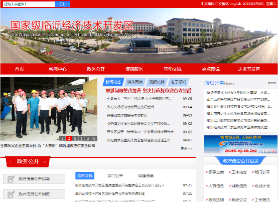 临沂市经济技术开发区门户网站一直围绕提供更好的便民服务和建设魅力多元的开发区为目标,在凸显临沂开发区特色的基础上,充分融合和借鉴了多个优秀政府网站案例。网站整体布局开阔、错落有致,跳跃的鲜红色和蔚蓝增添了整个页面的灵动性和节奏感,寓意着开发区活泼、积极向上的发展风貌。