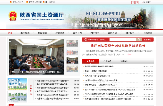 陕西省国土资源厅网站在提高陕西省国土资源系统政务信息质量和水平,全面、准确反映陕西省国土资源工作动态和工作成效,促进国土资源管理工作高效运行和社会理解支持等方面表现突出,一直广受好评。