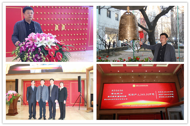 1月30日下午,西安博达软件股份有限公司在全国股转系统总部大厅(北京)举行新三板挂牌仪式。14点30分,博达软件董事长魏小立先生致辞,14点40分,魏小立先生亲自敲响开市宝钟,博达软件登陆新三板。证券简称:博达软件,证券代码:831616。