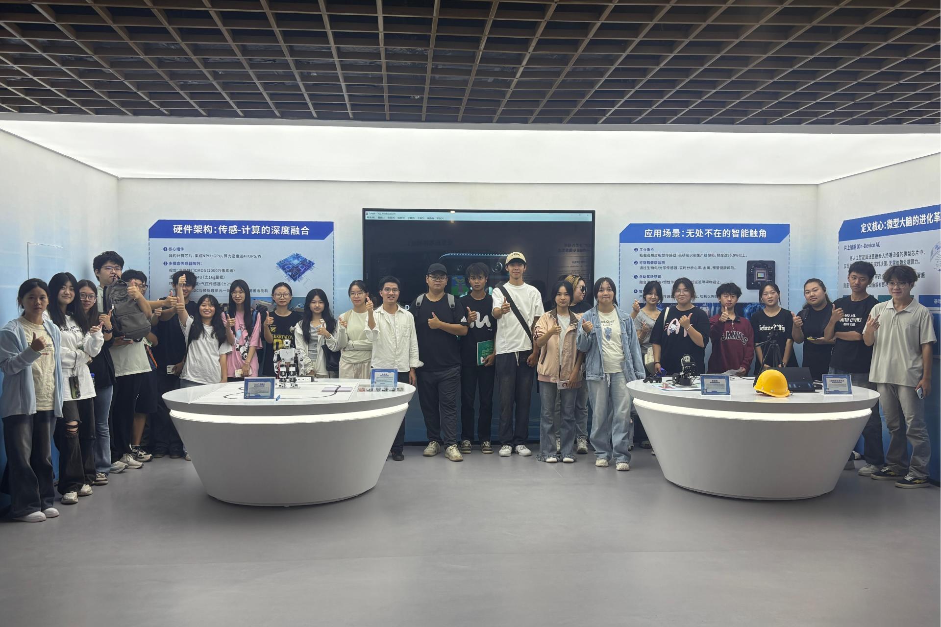 本次参观活动涵盖了学校四个重要场馆:校史馆、校级实验中心、科技馆和创新实践基地。在校史馆内,陈列的相框和资料生动展示了学校二十余年的发展历程,展品让同学们深刻感受到学校在教学、科研等方面取得的辉煌成就。学校实验教学中心的奇妙工艺品、科技馆内展示的仿真机器人、创新实践基地的机甲模型等互动展品,激发了同学们浓厚的兴趣与好奇心。