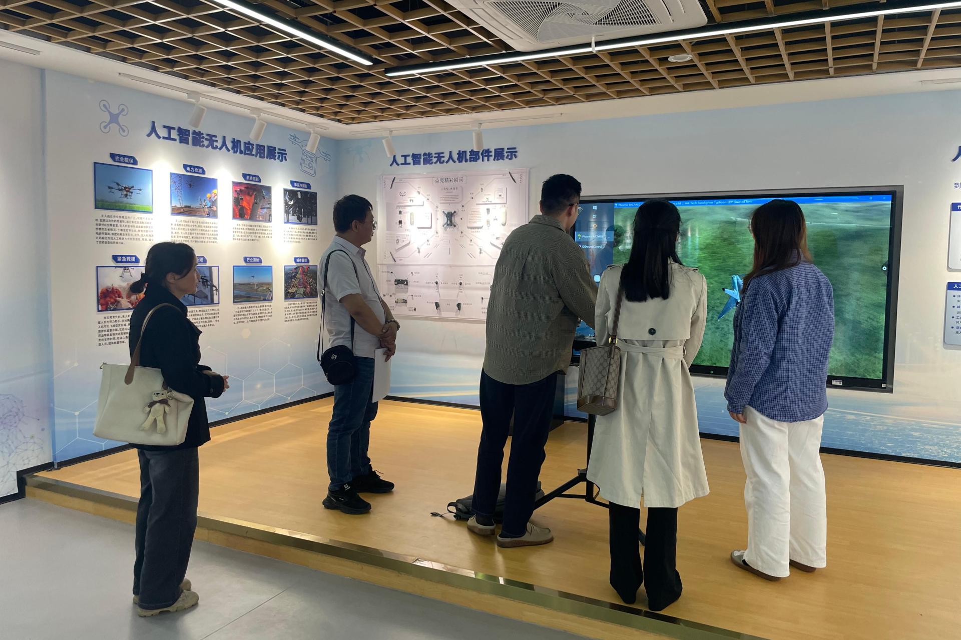 在科技馆内,讲解员重点介绍了人工智能无人机应用展示及无人机部件展示等展区。通过现场演示与实物观摩,来访教师详细了解了无人机在智能控制、路径规划、行业应用等方面的最新技术成果,以及核心部件的设计与功能。参观过程中,来访教师对我校在人工智能与无人机领域的教学科研平台建设表示高度赞赏,并就无人机外观设计、人机交互界面等专业问题与我校教师进行了现场交流。