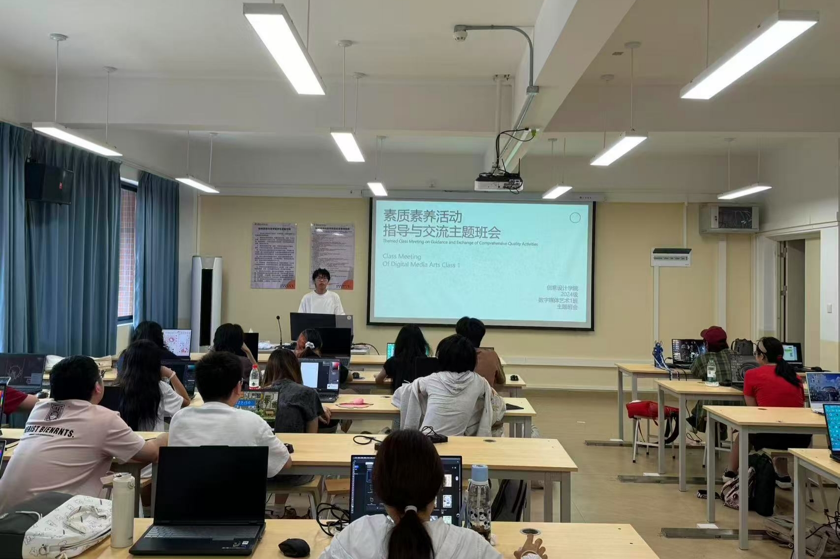 为提升学生综合素质,增强学生自我认知与实践能力,2024级数字媒体艺术1班于2025年9月11日开展了一场以“素质素养活动指导与交流”为主题的班会活动。