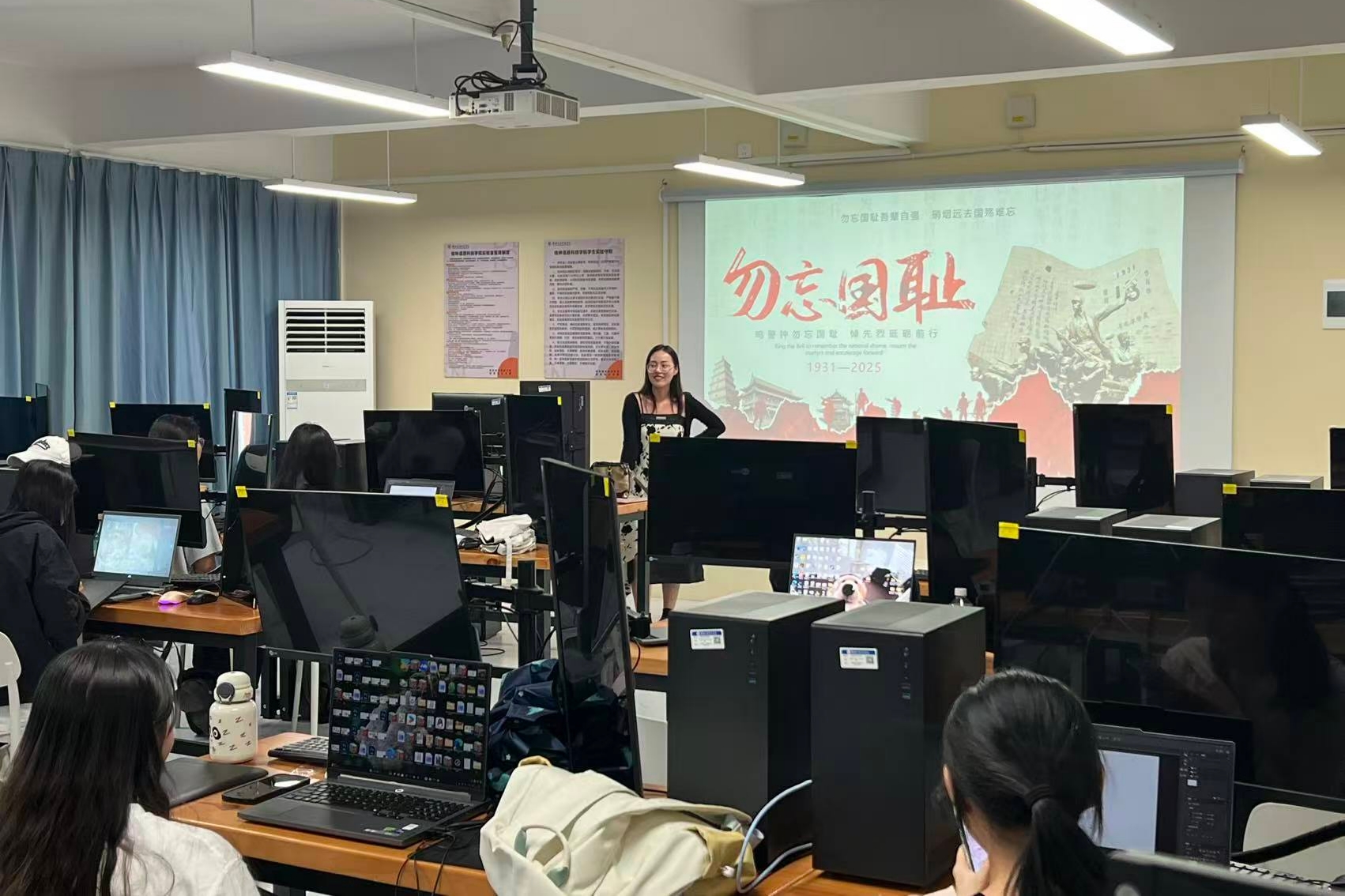 伍红霞老师通过多媒体呈现九一八事变珍贵影像与历史,结合东北抗联战士杨靖宇、赵一曼等英雄事迹,带领同学们重温民族危亡时刻的悲壮史诗。她特别强调,设计不仅是视觉表达,更是文化传承的载体。作为新时代设计学子,同学们要用作品传递历史记忆,让红色基因在创意中永续传承。