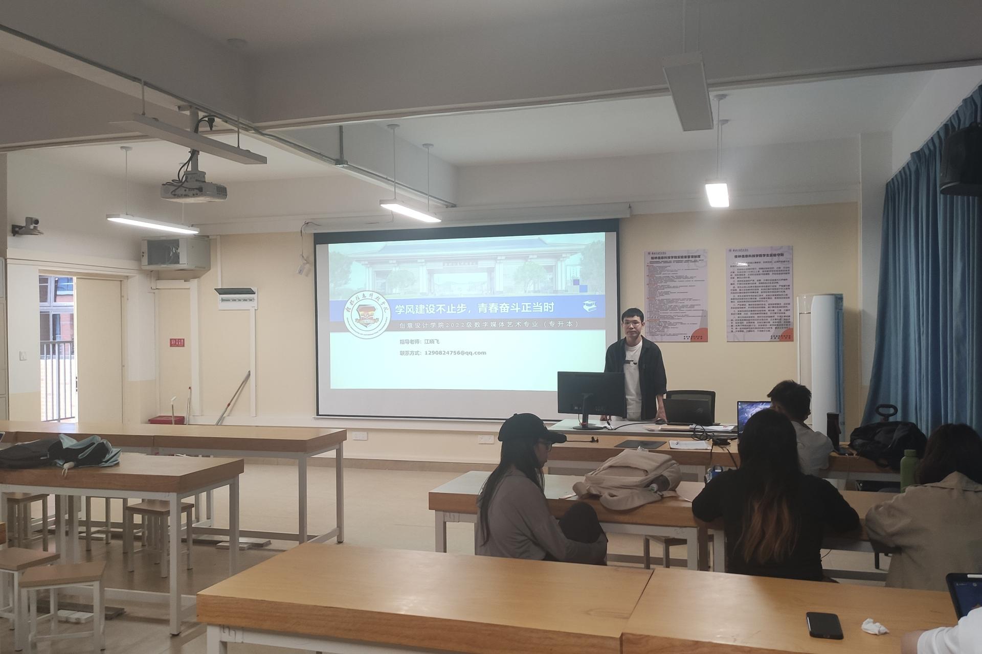 9月24日,2022级数字媒体艺术专升本班级在守正楼G407教室召开学风建设主题班会。班会由班主任江晓飞主持,全体同学参会。