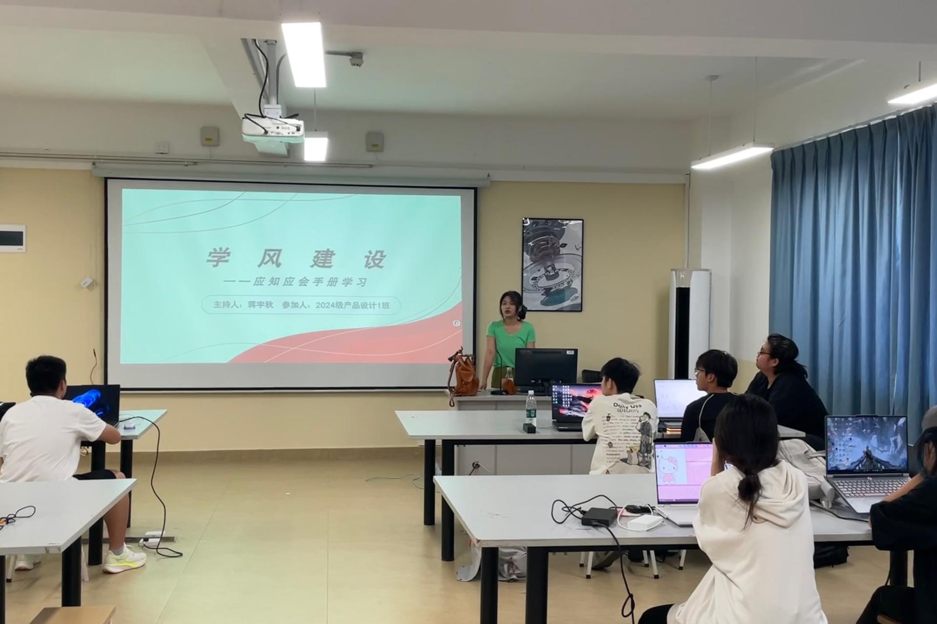 为强化学风建设,进一步营造积极向上的班级氛围,助力学生成长成才,9月23日,2024级产品设计1班在守正楼G201教室成功举办“学风建设——应知应会手册”专题学习会。本次学习会由班主任蒋宇秋主持,班级全体同学参加。