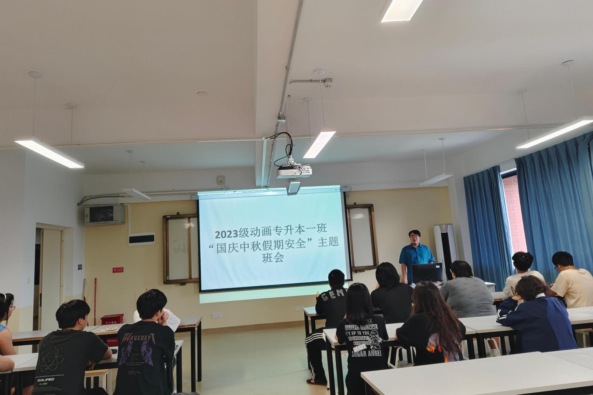 为切实筑牢假期安全防线,确保师生度过平安、文明、祥和的“双节”,9月26日,2023级动画专升本1班在守正楼G406召开“国庆中秋假期安全”主题班会。班会由班主任文蕾老师主持,全体同学参加。