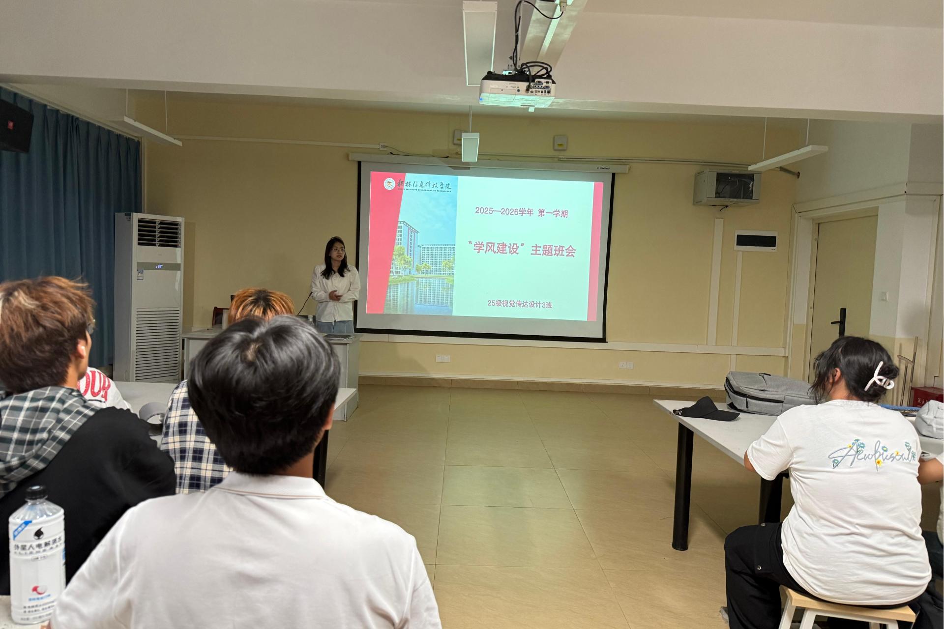 为夯实学风建设,助力学校合格评估工作,9月24日,杨昕雨老师于守正楼G302教室举办了学风建设主题班会,2025级视觉传达设计3班全体成员参加了此次班会。