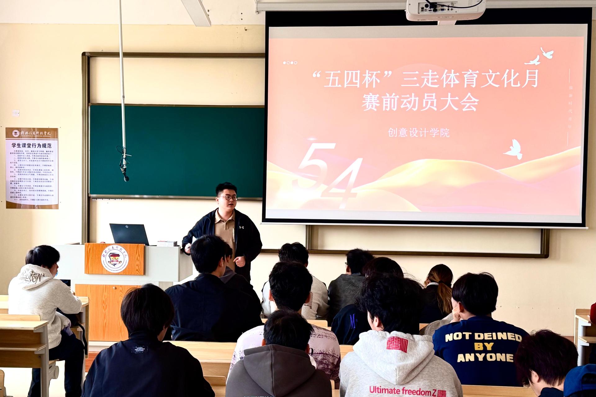 为深入推进校园体育文化建设,引导青年学生积极参与体育锻炼,凝聚团队精神,3月27日,创意设计学院在德远楼E305顺利召开“五四杯”三走体育文化月赛前动员大会。会议由学院团委书记李威主持,全体参赛运动员参加。
