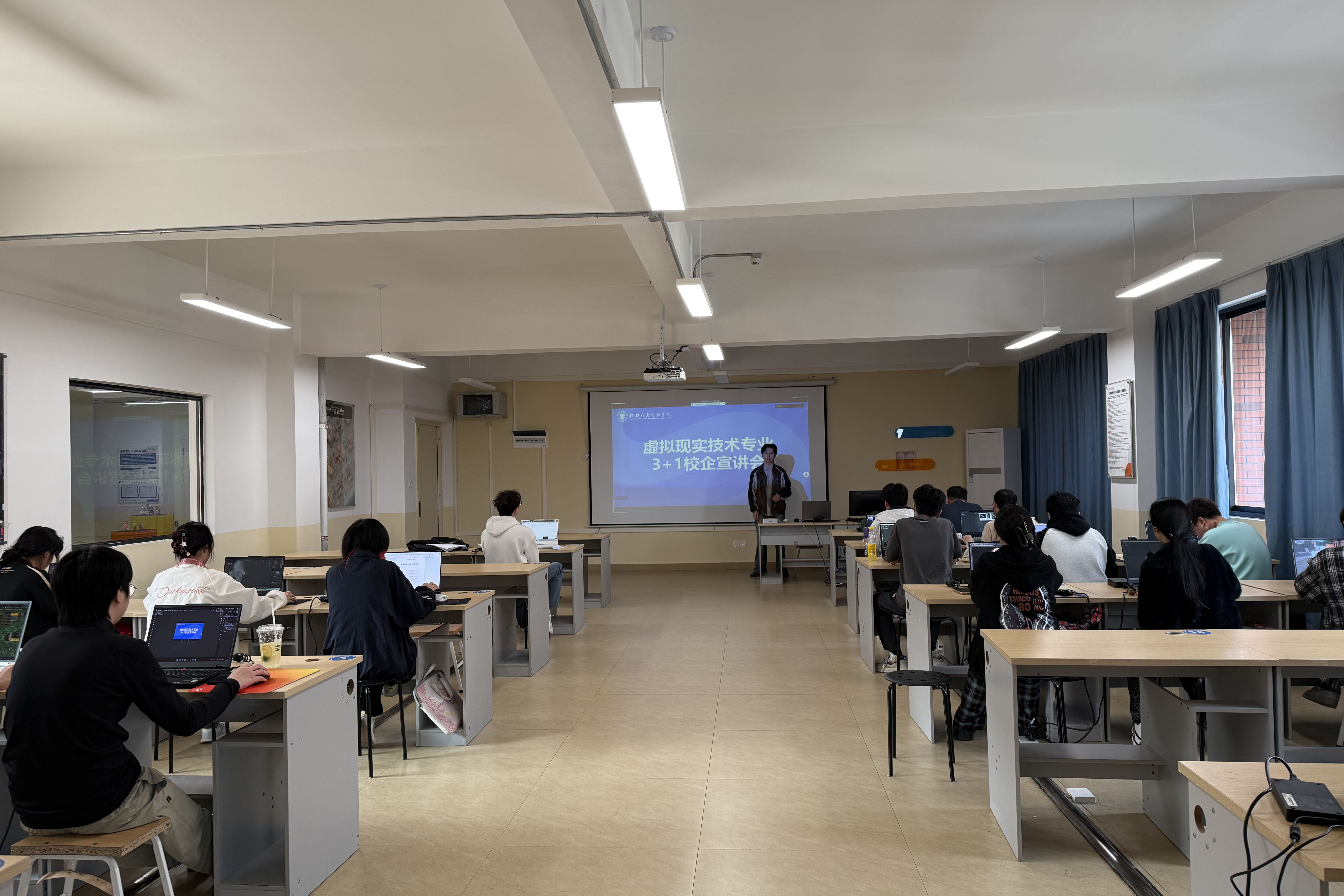 为全面推进校企协同育人机制,帮助学生搭建从校园迈向职场的坚实桥梁,3月31日,虚拟现实技术教研室在守正楼G314教室召开了面向2023级专升本学生的“3+1”校企联合培养动员大会。大会由唐宇老师主持,虚拟现实技术专业2023级专升本全体学生参加。会上,唐宇老师对“3+1”培养模式进行了解读。同时,唐宇老师介绍了校企双向选择的具体流程,简历投递、企业面试及岗位分配的关键时间节点,提醒同学们要提前打磨作品集。他鼓励同学...