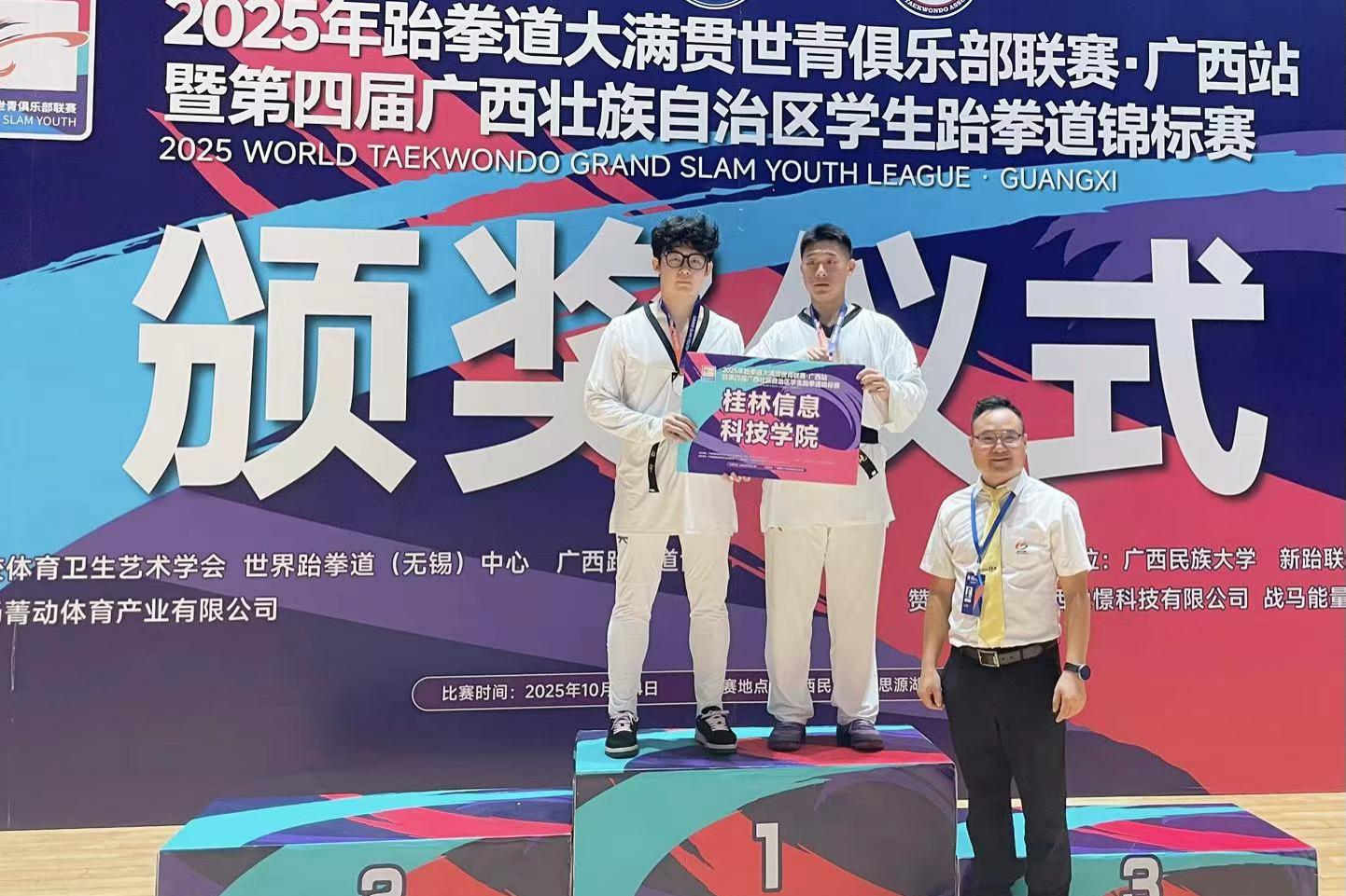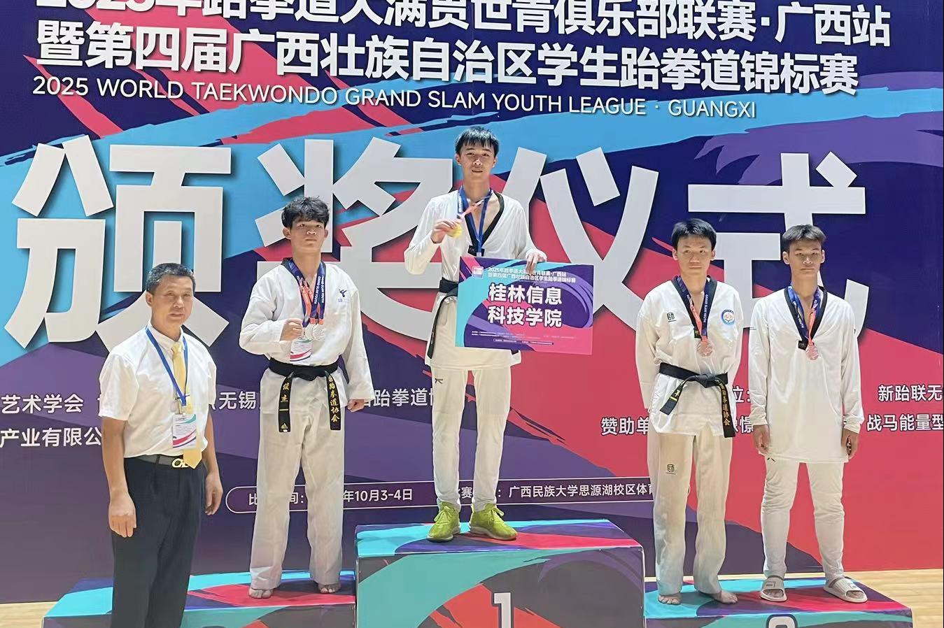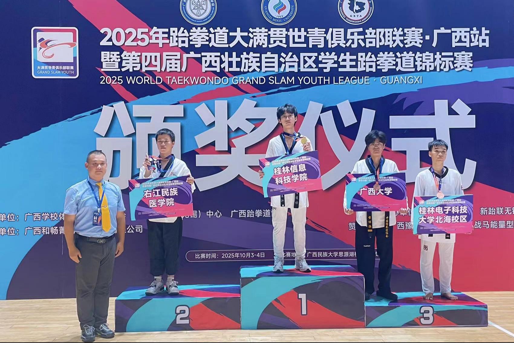 近日,由广西学校体育卫生艺术学会主办,广西民族大学承办的第四届广西壮族自治区学生跆拳道锦标赛圆满收官。我校体育与健康学院钟依岑、李炜、程乾三位老师带领我校跆拳道代表队参加此次锦标赛并获得3金1银的优异成绩。