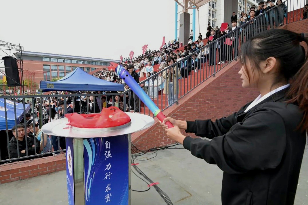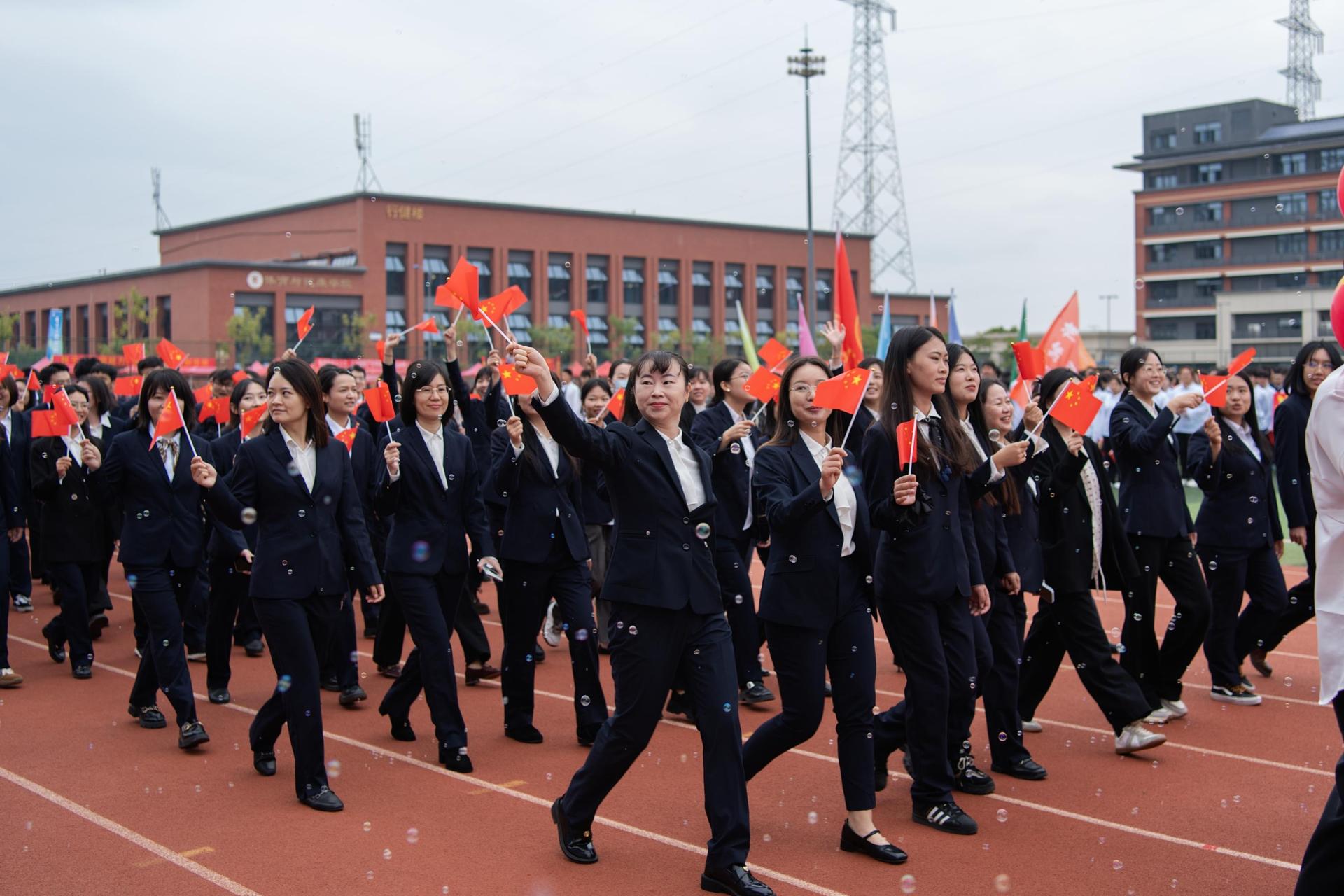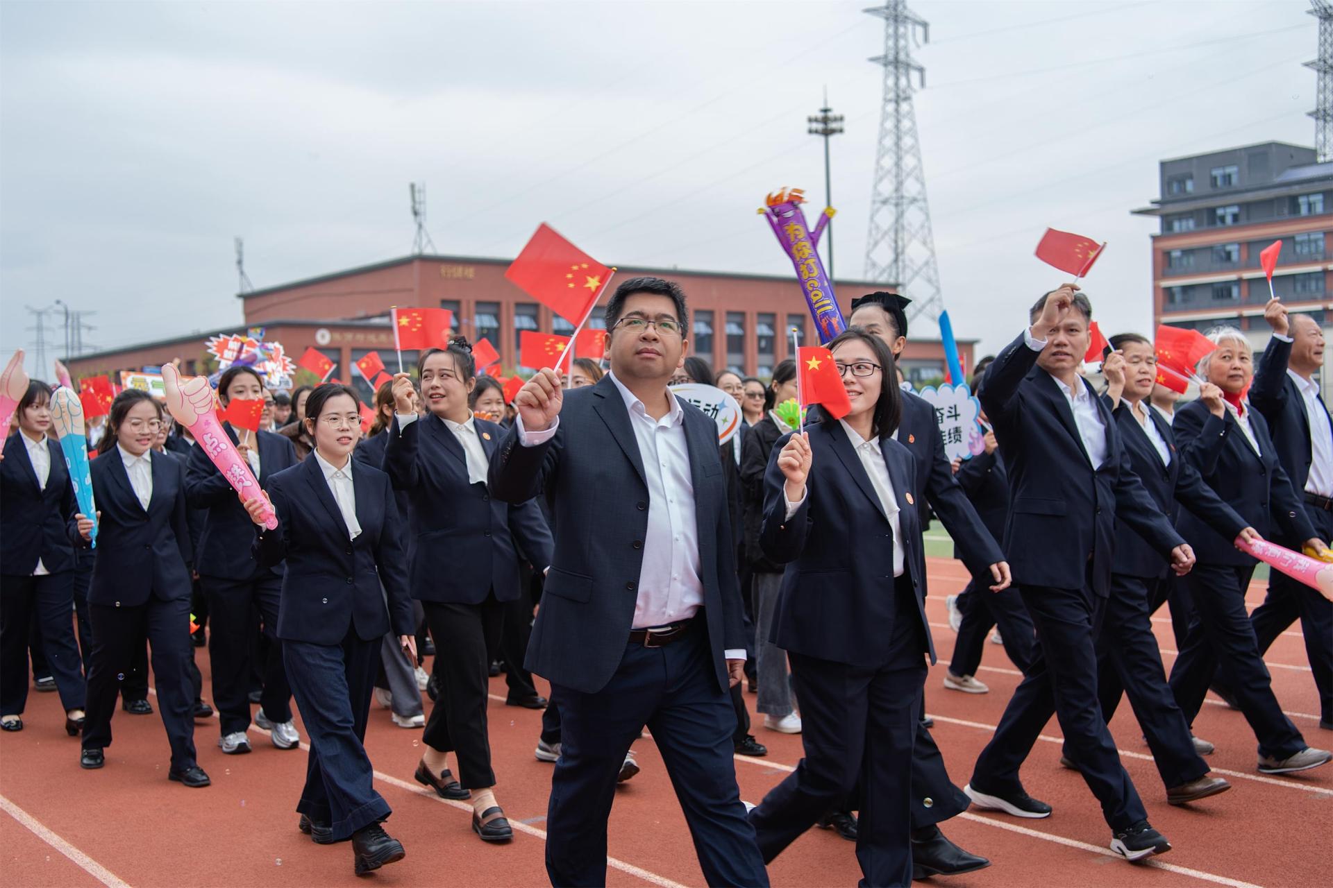 在庄严的升国旗仪式后,校长解庆林致开幕词。他强调,体育是“五育并举”的重要组成部分,学校高度重视体育教育,始终秉持“以终为始、以生为本”的办学理念,不断完善体育设施、优化教学条件,全力推动体育事业发展,助力学生德智体美劳全面发展。解庆林表示,运动会是全校年度体育盛事,既是速度与力量的较量,也是体育精神的展现。他希望运动员们发扬奥林匹克精神,赛出风格与水平;裁判员们秉持公平公正公开原则,保障赛事顺利进行;全校师生能借此契机积极参与体育锻炼,让“爱信科、爱运动”的理念深入人心。