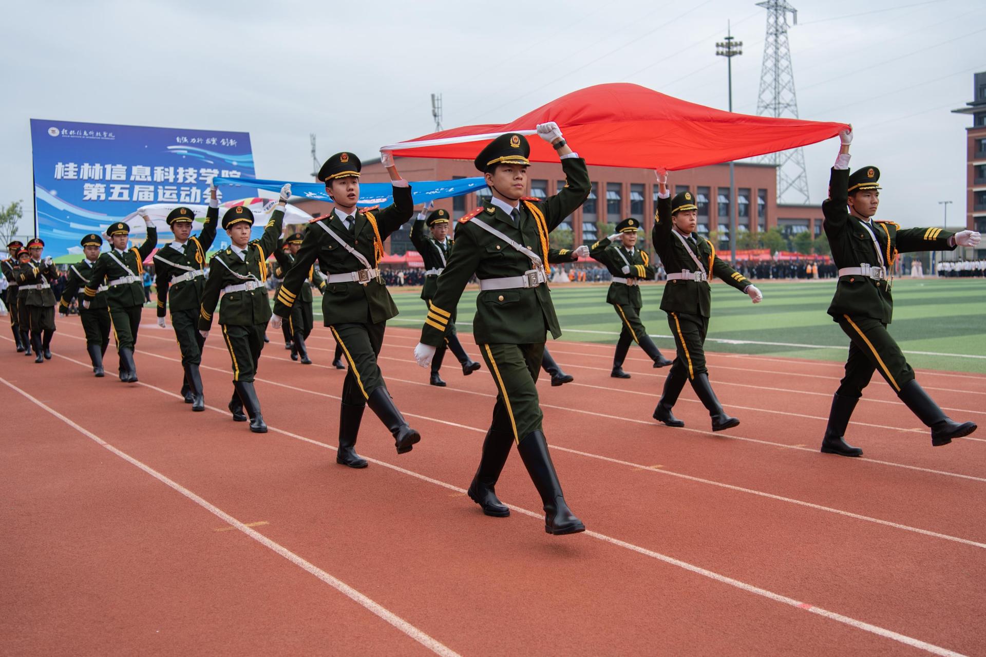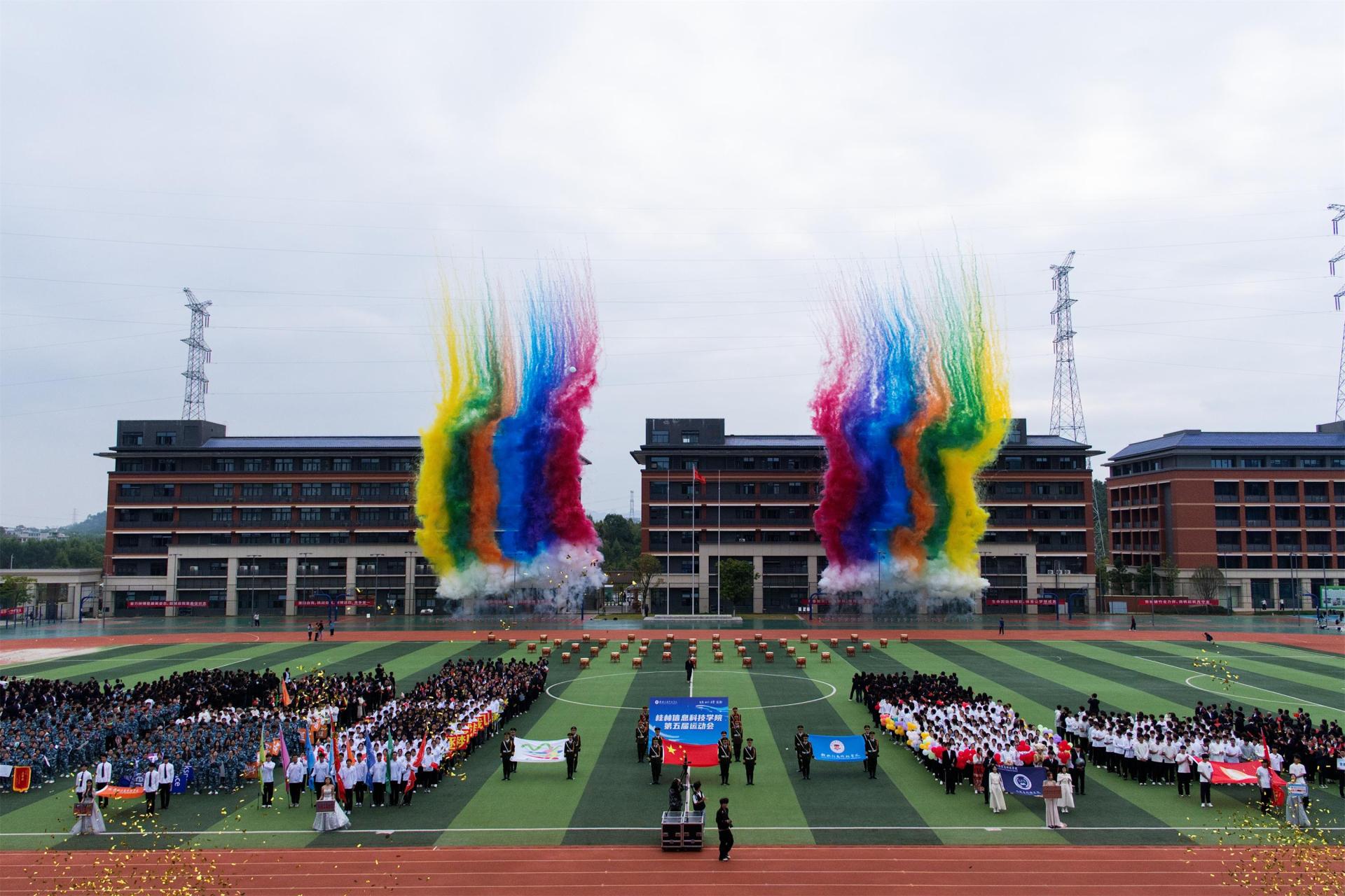 10月31日上午,桂林信息科技学院第五届运动会在田径场正式拉开帷幕。董事长罗欣、校长解庆林、党委书记甘勇等全体校领导出席开幕式,学校体委领导及各单位、各部门主要负责人,运动员代表、裁判员代表、师生代表,运动会全体工作人员、志愿者参加开幕式。开幕式由党委副书记李飞主持。