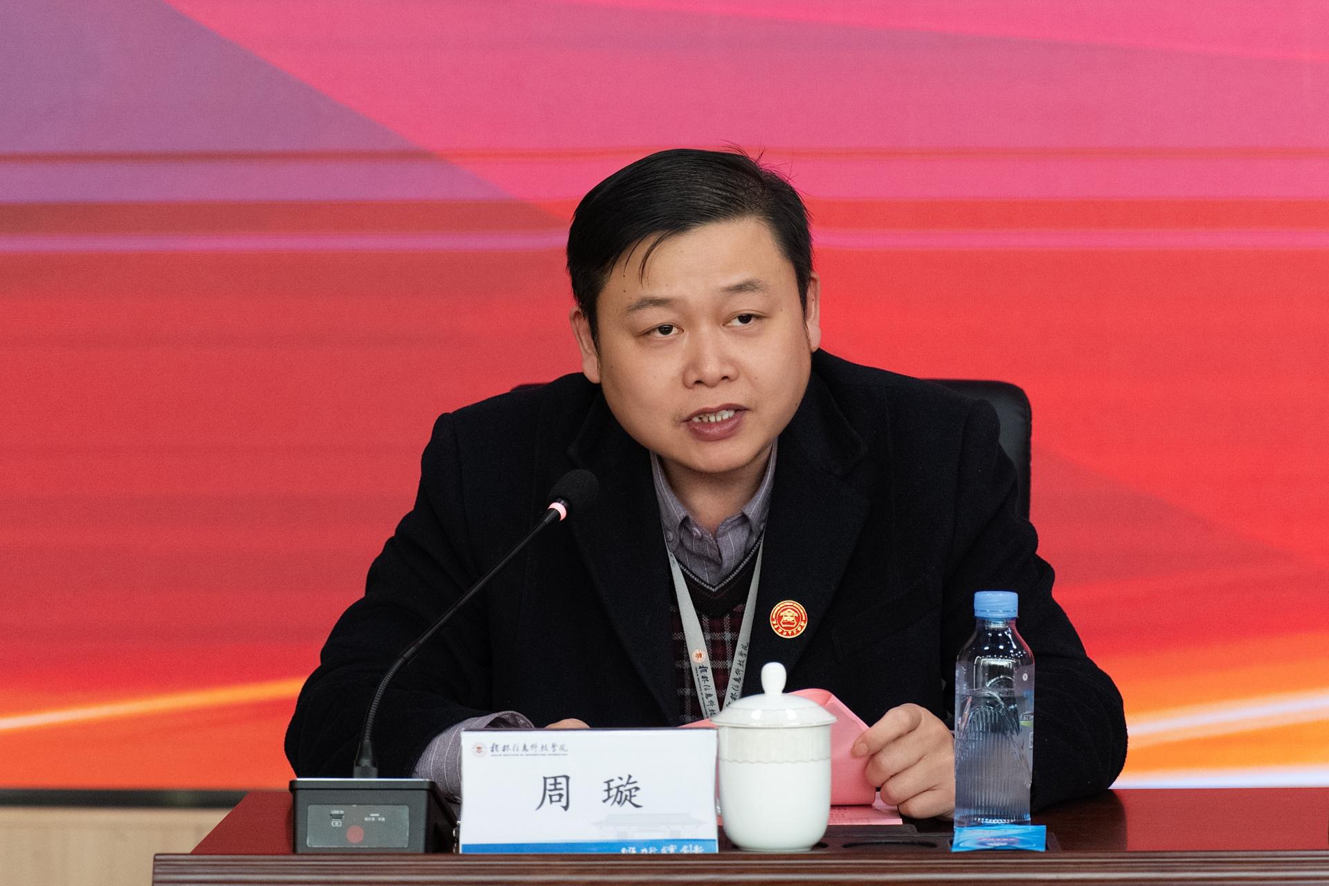 创意设计学院党总支书记范恒祯、2025届毕业班辅导员王永杰分别作为受表彰集体和个人代表发言,分享了在拓展就业渠道、精准对接需求、强化学生指导等方面的创新实践与有效经验。