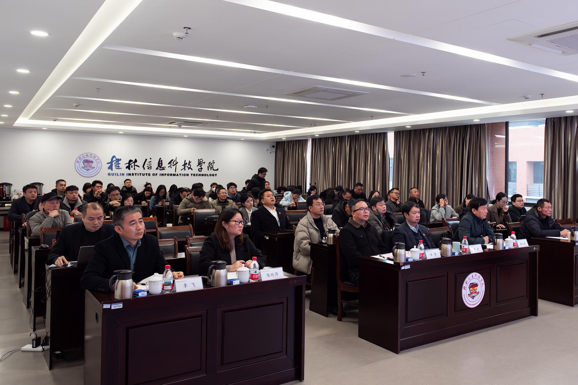 董事长罗欣作总结讲话。他从学校战略发展的高度,回顾了一年来学校整体发展态势,向全体教职工的辛勤付出表示衷心感谢,并对未来发展方向提出殷切期望。董事长强调,全校上下要以此次述职为契机,进一步统一思想、明确目标、压实责任;要立足2025年工作基础,科学谋划2026年重点任务,牢牢把握人工智能发展浪潮,以新思维、新举措应对新阶段新挑战;要持续聚焦立德树人,深化教学改革,完善治理体系,稳步向高水平应用型大学建设目标迈进;要秉持务实作风、强化创新意识,凝聚高质量发展的强大合力,共同开创桂林信息科技学院高质量发展新局面。