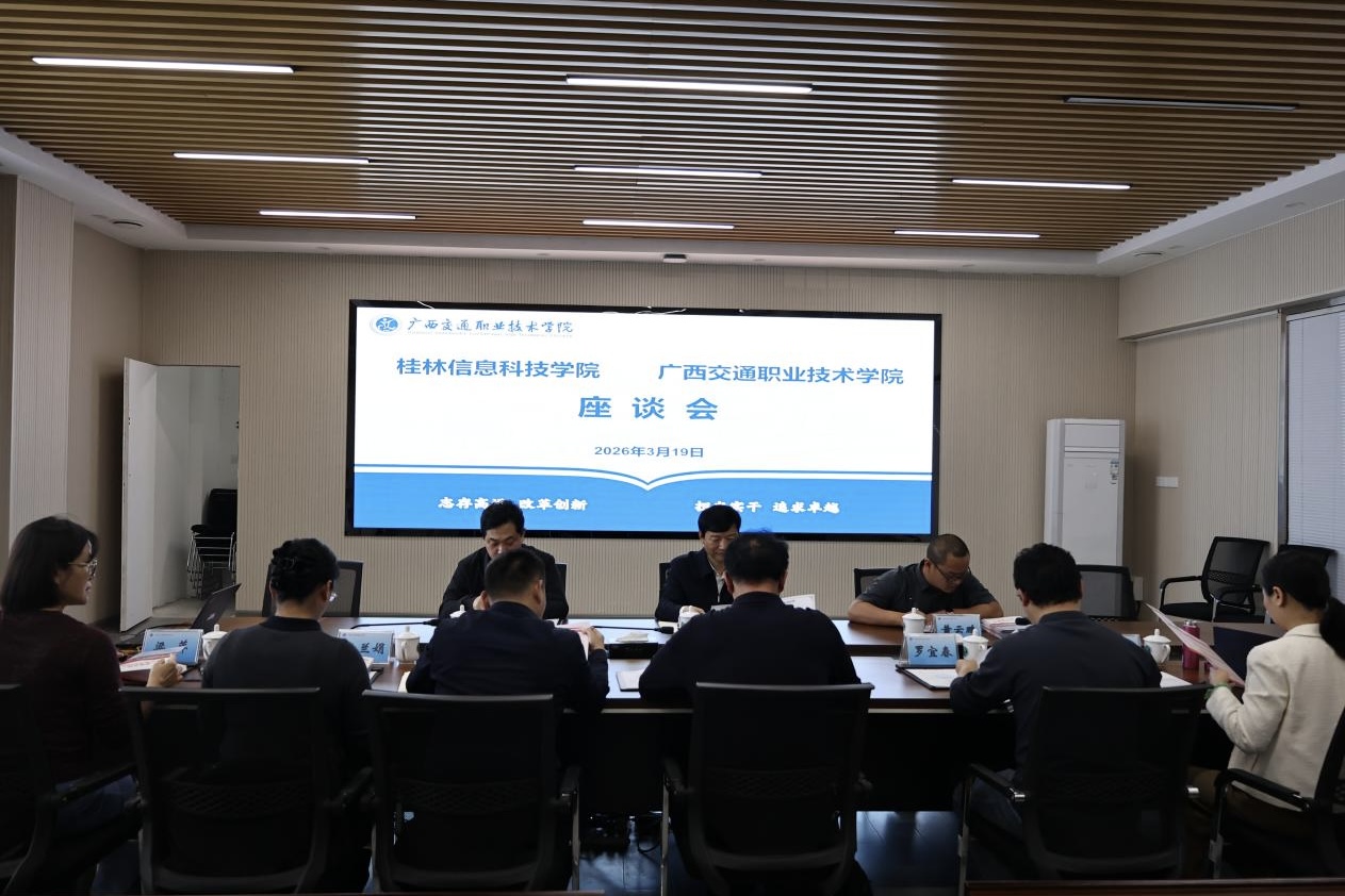 3月19日下午,我校校长解庆林率队前往广西交通职业技术学院开展调研交流。广西交通职业技术学院李文勇校长及相关职能部门、二级学院负责人出席了本次座谈会,我校相关职能部门及二级学院负责人陪同参加交流。