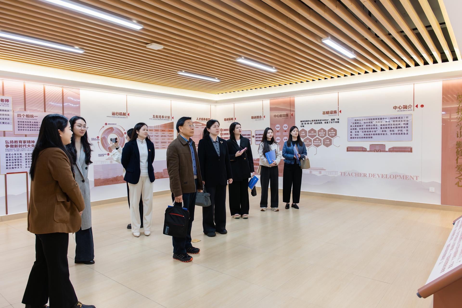 座谈会后,李桂华副校长陪同刘登义副校长一行实地考察了我校教师发展中心、图书馆、产教融合中心、科技馆等教学科研场所。过程中,嘉宾们认真听取相关介绍,详细了解我校在教师培养、产教协同育人、科研平台建设等方面的具体举措,对我校在教师全周期成长培养、应用型人才培养模式创新等方面的探索与实践给予高度评价。